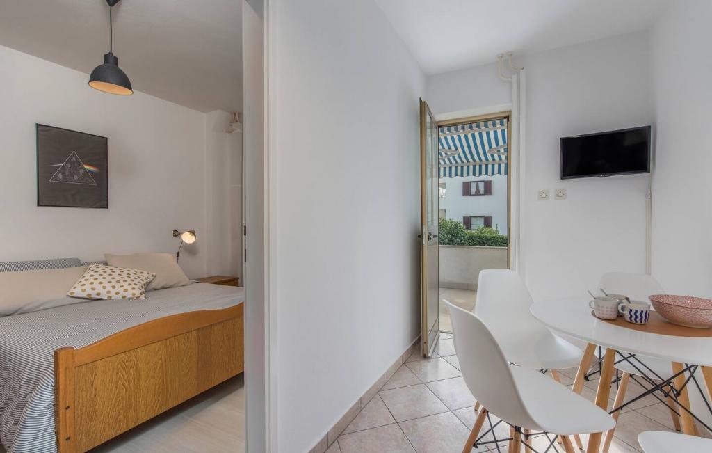 Soukromý dům se nachází v ideální zóně pro rodiny s dětmi a pro všechny, kteří chtějí být v blízkosti pláže a nedaleko centra města se všemi letními akcemi. Skládá se z apartmánů twoo. Apartmán Morgan jednopokojový apartmán se nachází v prvním patře. Skládá se z kuchyně s jídelnou, obývacího pokoje, jedné ložnice s manželskou postelí a koupelny se sprchou. Ideální pro pár se soukromou terasou. Apartmán Bowie, ideální pro rodinu, sestává z kuchyně s jídelnou, dvou ložnic s manželskou postelí a zrekonstruované koupelny se sprchou. Před domem je terasa, kde si můžete odpočinout po dni stráveném na pláži. V ceně je zahrnuto parkování před domem, Wi-fi a spotřeba elektřiny a vody. Renovovaná koupelna v roce 2020.