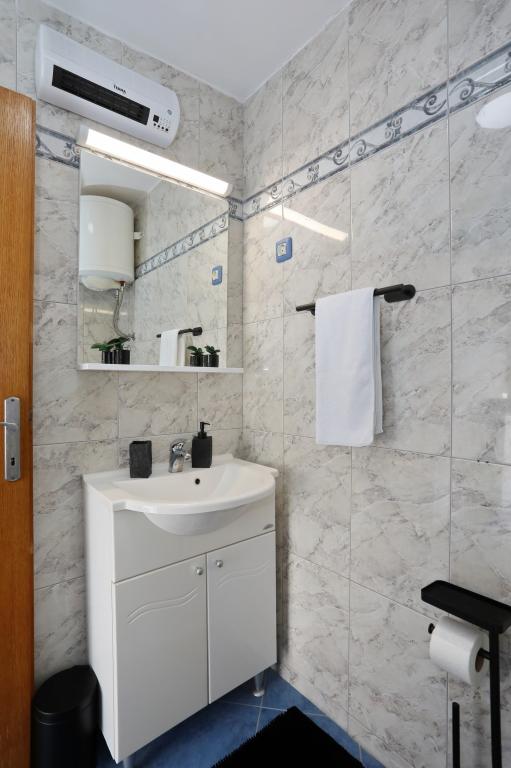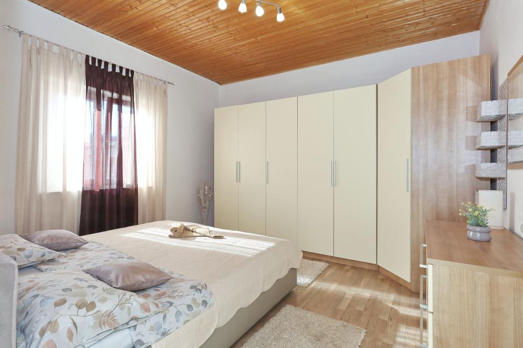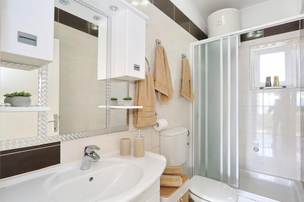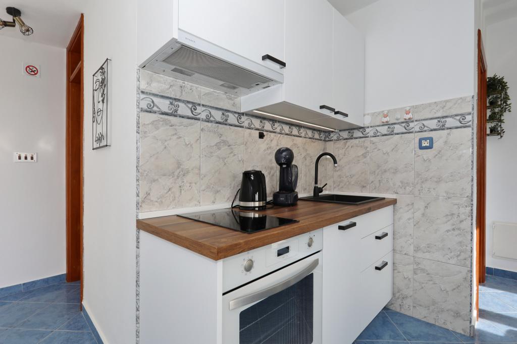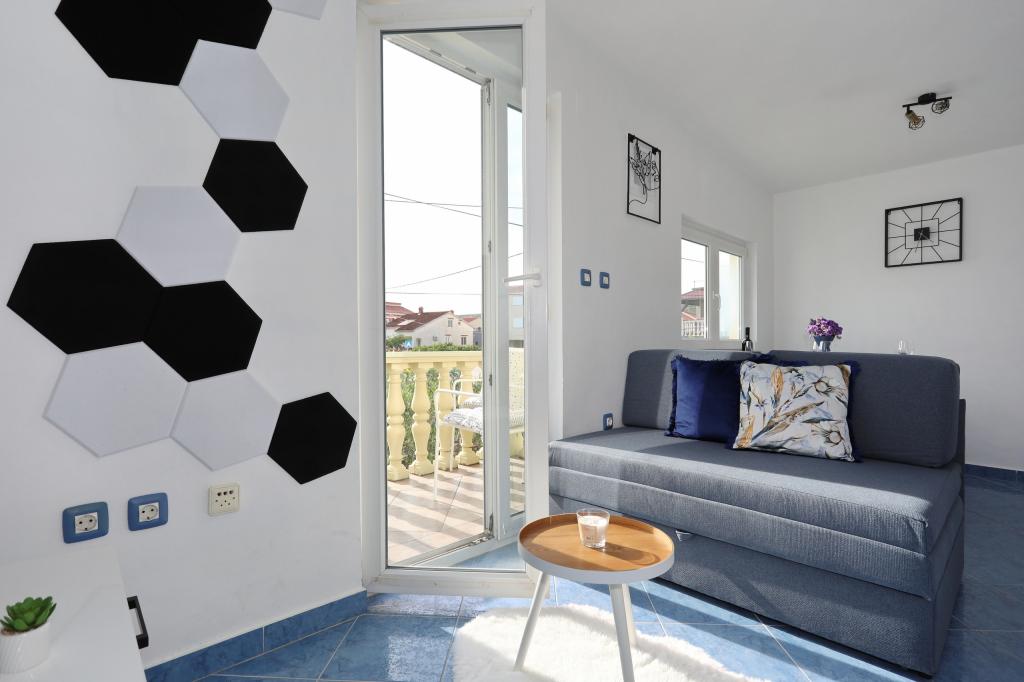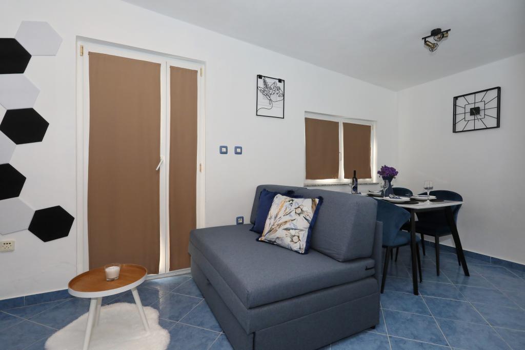 Nově moderně zařízený apartmán 45 m2 s balkonem v samém centru města a zabezpečeným parkováním před vchodem do apartmánu. Dostupnost obchodů, pekárny, řeznictví, tržnice, lékárny, pošty, bankomatu, restaurace jen cca 5 min. a kaváren, zdravotního střediska atd. Vzdálenost k první oblázkové a betonové pláži je 5-8 min. a oblázkových a stinných pláží 10-15 min. pěšky. Možnost parkování na pláži. Písčitá pláž s zabezpečeným parkováním v blízkosti plážového baru 5 min. autem. Samotné město nabízí krásné výletní místo Čelinka a nachází se v blízkosti řady národních parků Zrmanja, Paklenica, Krka, Plitvice, Kornati atd.