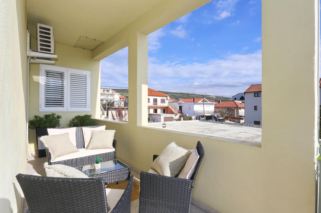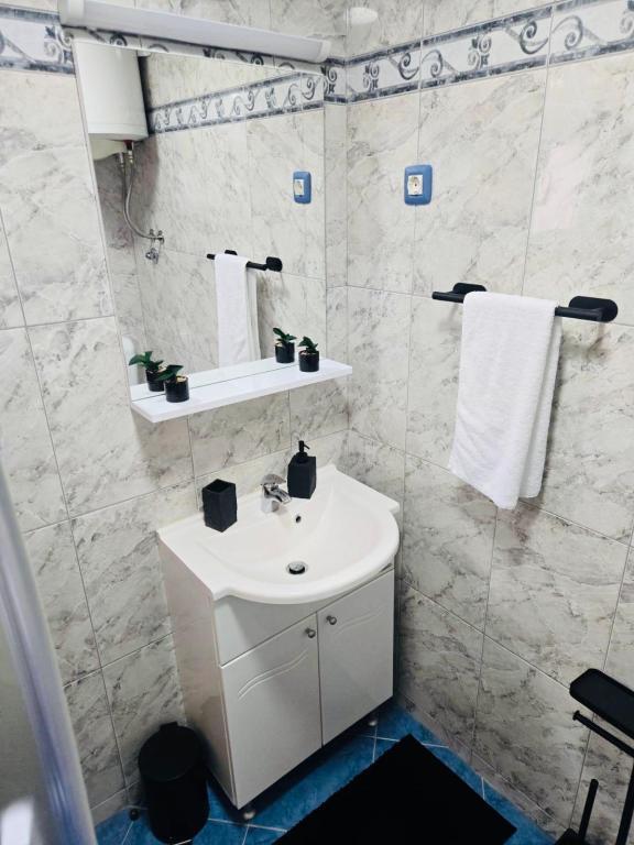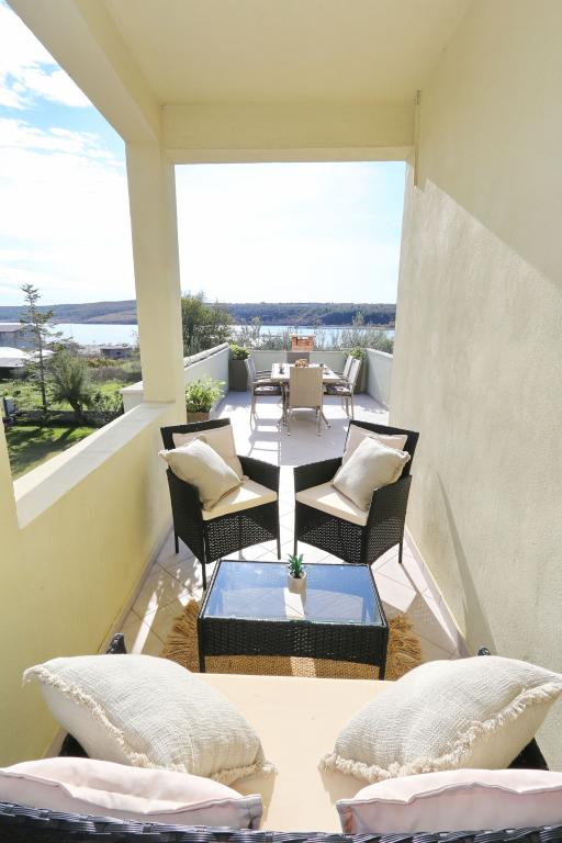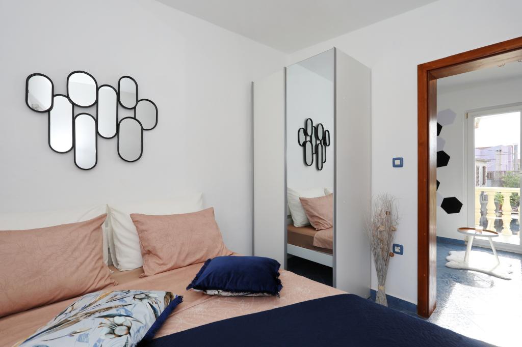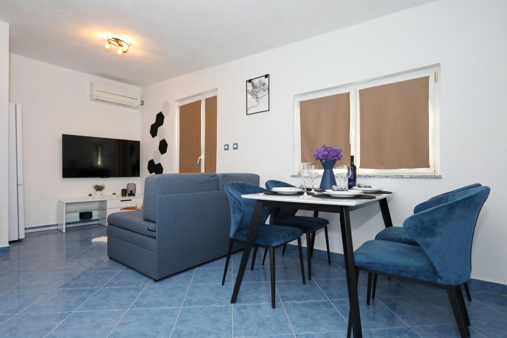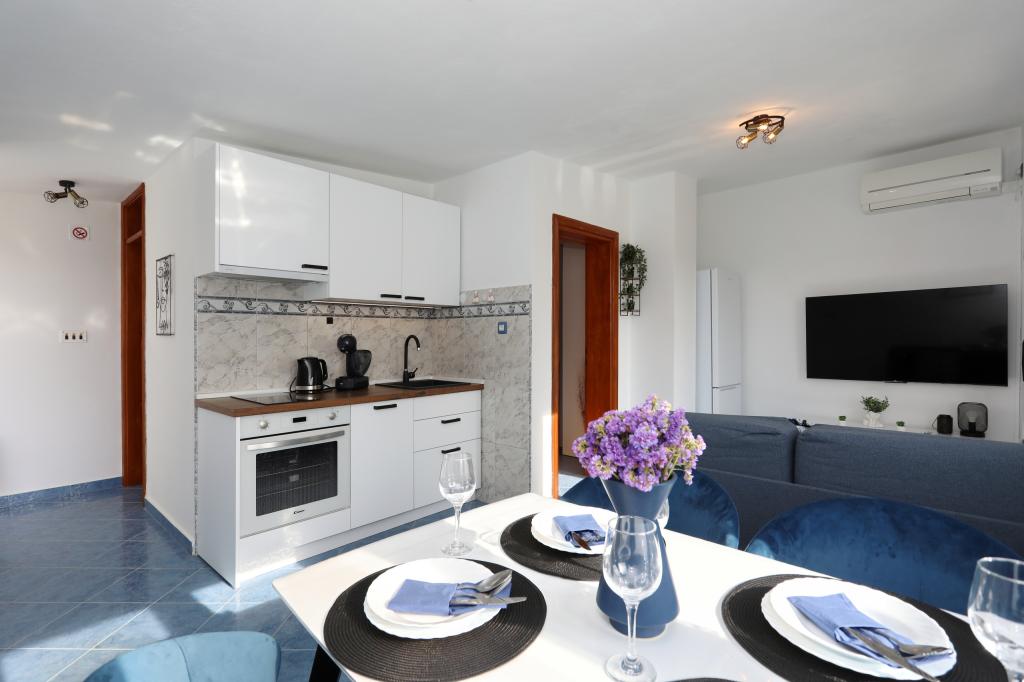 Nově moderně zařízený apartmán 45 m2 s balkonem v samém centru města a zabezpečeným parkováním před vchodem do apartmánu. Dostupnost obchodů, pekárny, řeznictví, tržnice, lékárny, pošty, bankomatu, restaurace jen cca 5 min. a kaváren, zdravotního střediska atd. Vzdálenost k první oblázkové a betonové pláži je 5-8 min. a oblázkových a stinných pláží 10-15 min. pěšky. Možnost parkování na pláži. Písčitá pláž s zabezpečeným parkováním v blízkosti plážového baru 5 min. autem. Samotné město nabízí krásné výletní místo Čelinka a nachází se v blízkosti řady národních parků Zrmanja, Paklenica, Krka, Plitvice, Kornati atd.