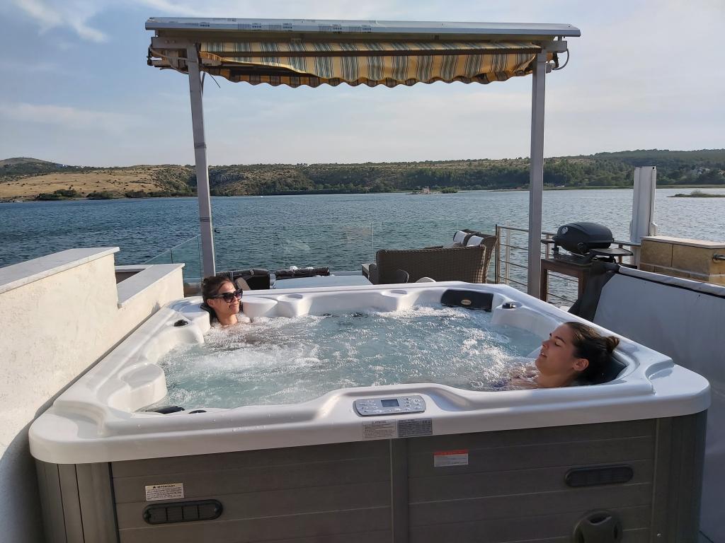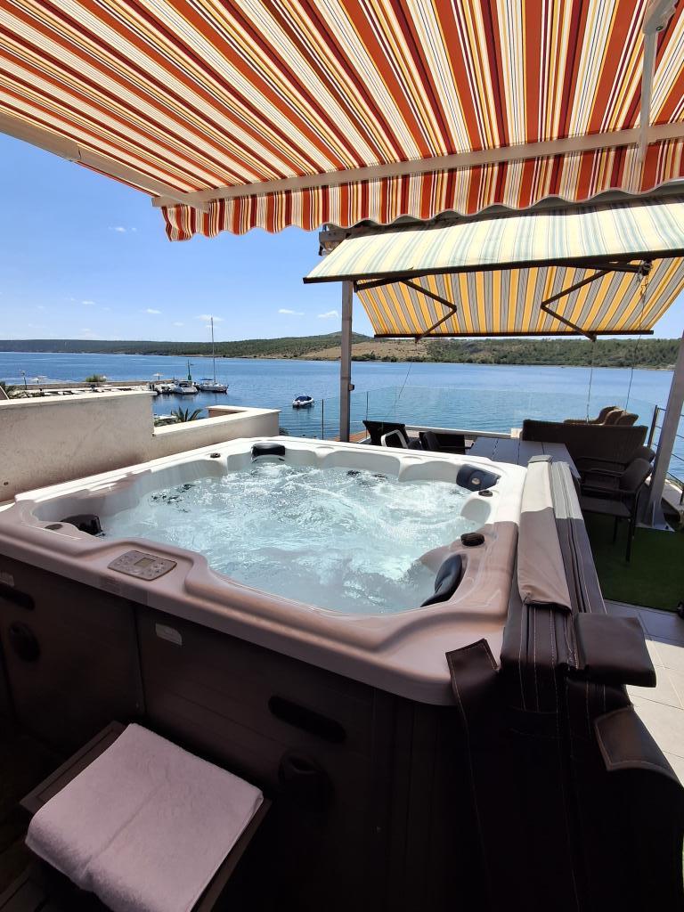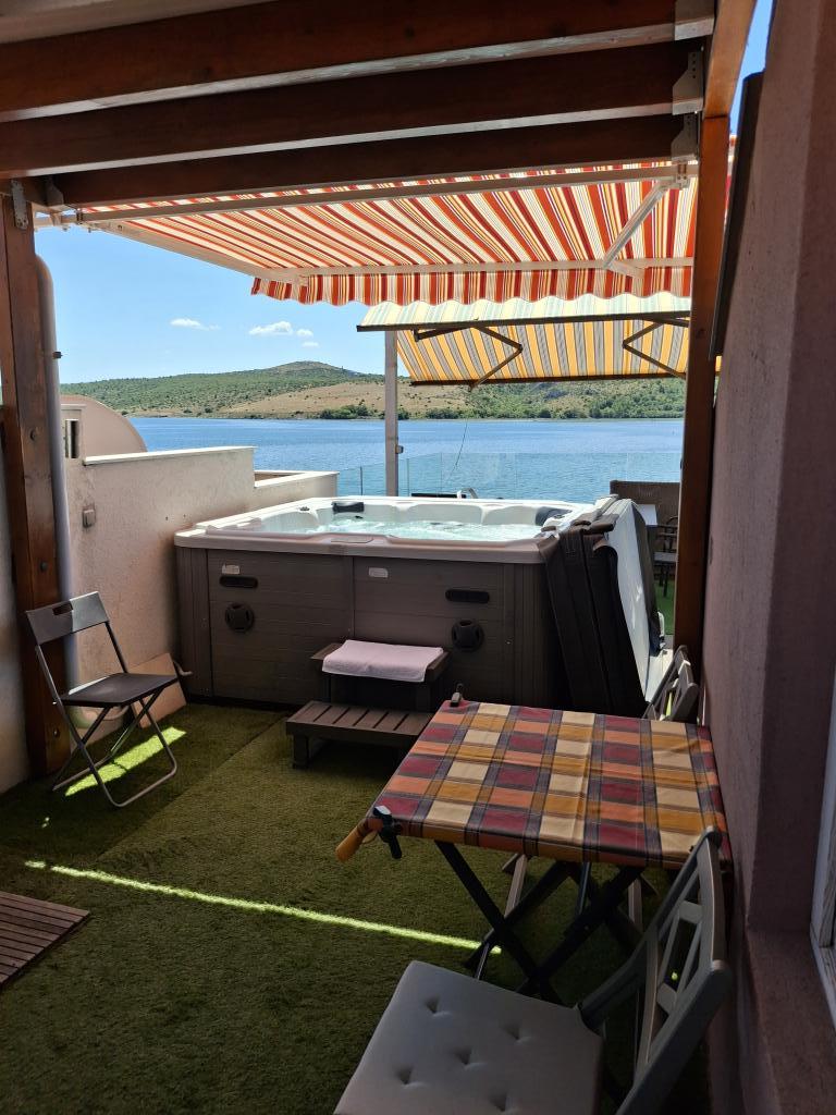 K dispozici je pouze apartmán s vířivkou, viz kalendář, cena 110 eur za noc. Apartmány jsou v první řadě u moře. Nacházejí se v centru Posedarje s výhledem na přístav a hlavní místní pobřeží podél pláže. Nacházejí se v rodinném domě se samostatným vchodem pro apartmány. Všechny apartmány mají balkon nebo terasu, jsou vybaveny nádobím, ložním prádlem, ručníky. Všechny mají klimatizaci, smart LCD TV. Nabízíme 1 standardně zařízený apartmán a jeden luxusní apartmán s terasou o rozloze 50 m2, soukromou vířivkou a lehátky. Luxusní apartmán lze pronajmout bez terasy a vířivky, pak je cena o 20-30 eur nižší na poslední chvíli. Máte-li jakékoli dotazy ohledně apartmánů, neváhejte nás kontaktovat e-mailem. Video Posedarje https://youtu.be/Aaxb63SeQzk https://vimeo.com/137698262