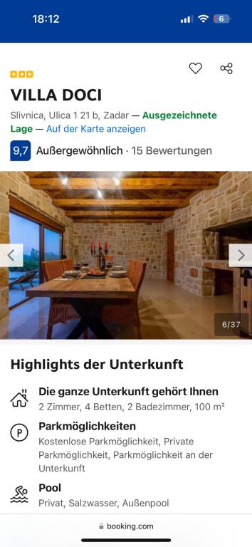 Villa Doci, dům s bazénem se 4000 m2 soukromého oploceného pozemku, příjemná zahrada s grilem, se nachází v malé vesničce, klidná lokalita ideální pro rodinu. V srdci Dalmácie, v blízkosti národních parků, hor a ostrovů. Plně vybavený, dům má naprosto vše pro příjemný pobyt. Ve službách hostitelů podle potřeby.