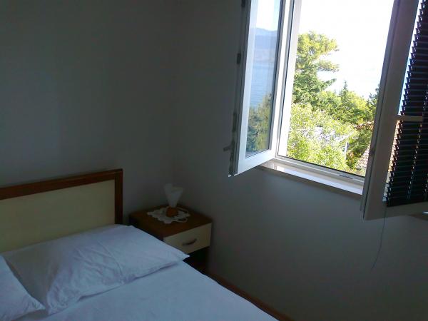 Krásný byt s výhledem na moře, se nachází v klidné části Postira. Je plně vybaven. Vzdálenosti: Dům se nachází na pobřeží moře cca 70 m, dům je situován cca 700 m od centra, nejbližší restaurace se nachází cca 400 m, nejbližší obchod s potravinami se nachází cca 200 m Popis domu: tiché a klidné místo v zahradě a nádvoří ovocný sad, zahrada je plná zeleně, hostům je k dispozici, dům s vlastním parkovištěm. Pokud chcete, aby domácí zvířata, prosím oznámit předem. Doplňkové služby: prádelna v domě, na žádost