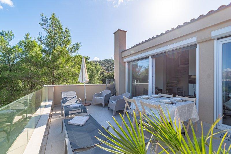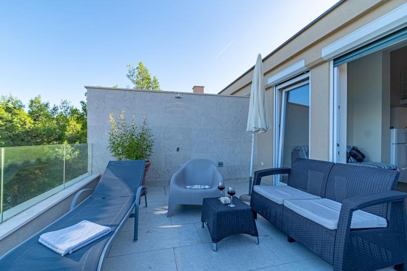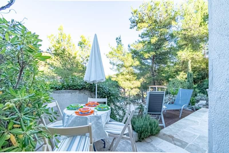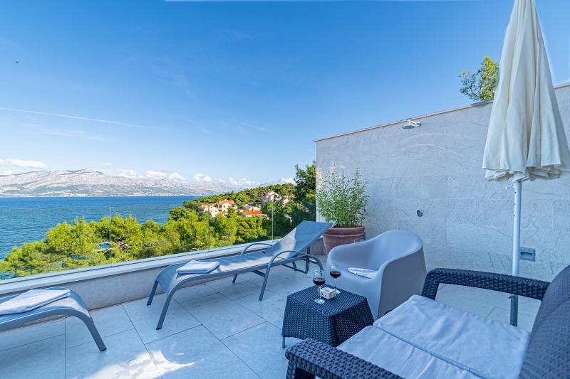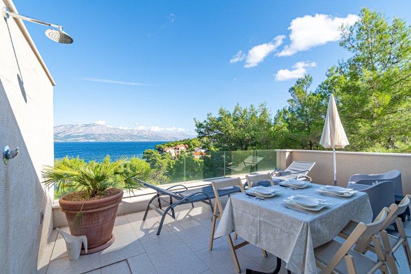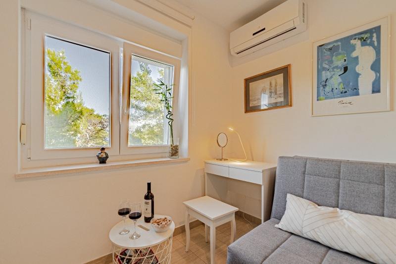 Pobytová taxa je v ceně.Vila Inga se nachází v zátoce Mala Lozna. V bezprostřední blízkosti apartmánu se nachází kavárna s barem na skále, která krásně splývá s přírodním prostředím a jejíž terasy se táhnou až k oblázkové pláži vhodné pro celou rodinu, kde je možnost pronájmu lehátek, slunečníků a sprchy. Pár kroků odtud začíná skalnaté pobřeží, podél kterého si můžete užívat moře a koupání v mnohem intimnějším prostředí. Před vilou vede cesta borovým lesem a podél moře k zátoce Lovrečina - ideální pro cyklistiku, pěší turistiku, jogging atd. 100 metrů odtud se nachází dobře zásobený supermarket s vynikající nabídkou potravin, nápojů a domácích potřeb. Do centra Postiry se dostanete asi za 20 minut poklidnou procházkou podél pobřeží.