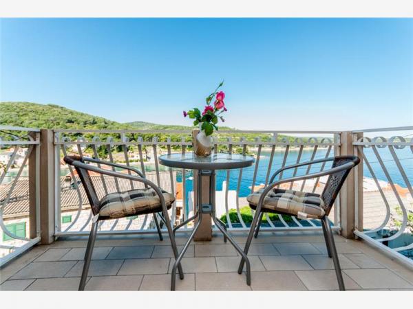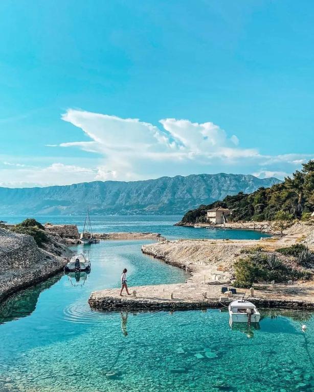 Dům je vzdálen cca 50 m od pobřeží, nejbližší restaurace cca 50 m, nejbližší obchod s potravinami cca 50 m Dům ve starém dalmatském stylu, v centru, s krásným výhledem na moře , na klidném a tichém místě, v blízkosti pláže (5-10 minut chůze), ve dvoře domu je ovocný sad, dvůr je ve stínu zeleně, dům má vlastní parkoviště. WI-FI zdarma, klimatizace. Doplňkové služby: prádlo lze po dohodě vyprat u hostitele, hostitel prodává potravinářské výrobky z vlastní produkce. (olivový olej, brandy)