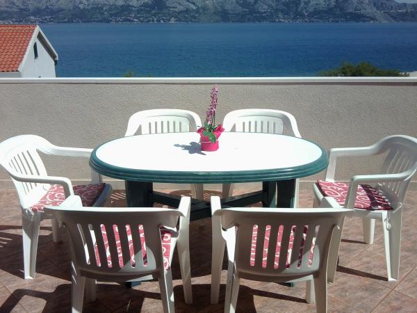 Apartmány jsou umístěny v kamenném domě v klidné části obce s výhledem na moře a pláž, která je jen 50 metrů. Plně vybavená, a zahrnuje dvě ložnice, obývací pokoj s kuchyní a jídelnou, TV-SAT, koupelna, velká terasa. Dvůr je k dispozici parkoviště a gril.
