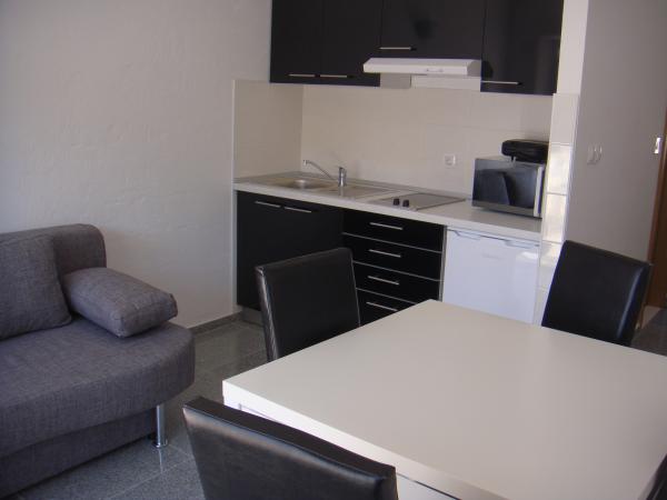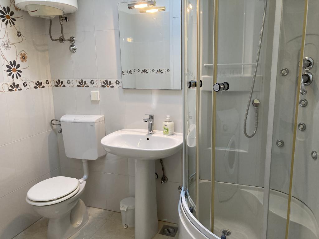 Apartmán 6 pro 2 osoby s krásným výhledem na moře, slunný a velmi prostorný se třemi ložnicemi s manželskou postelí, obývací pokoj s manželskou postelí, dvě koupelny, masážním sprchovým koutem, dvě klimatizace, indukční vařič, myčka, pračka , kávovar, varná konvice, mikrovlnná trouba a lednice. Terasa s krbem, grilem a terasou s výhledem na moře, které mají oddělené stoly a židle. Televizor v obývacím pokoji, a bezdrátové připojení k internetu je zajištěno. Je vybavena nádobí pro přípravu a servírování jídel a nápojů a příbory v přiměřeném množství. Je umístěn v prvním patře domu v centru města. To se nachází v blízkosti moře (40 m), obchod (50 m), četné pláže, restaurací, barů a dalších stravovacích zařízeních. V ceně je zahrnuto parkovací stání před domem, využití Kotvení lodí, ložní prádlo a ručníky, úklid po odjezdu a využití dětské lůžko v případě potřeby