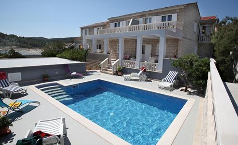 illa Vania je krásný kamenný dům s bazénem, který se nachází u moře v tiché turistické vesničce Povlja, 40 km východně od Supetaru na ostrově Brač. Dům se nachází v klidné části Povlje, jen 20 m od moře, kamenité a oblázkové pláže a jen 100 metrů od zátoky Tičja luka s oblázkovou pláží ideální pro děti. Od centra a všech hlavních turistických zařízení je dům vzdálený asi 800 metrů. Do centra se dostanete autem nebo podél pobřeží, které zdobí několik krásných pláží. Ubytování je vhodné jak pro rodinnou dovolenou v Povlji, pro dovolenou větší skupiny, tak pro milovníky vodních sportů a rekreační dovolenou. Apartmánový dům Villa Vania nabízí ubytování v 5 nově zrekonstruovaných, klimatizovaných apartmánech, každý s lůžkovou kapacitou pro 2-3 a 4 osoby. Každý apartmán obsahuje vybavenou kuchyň s obývací částí, jednu nebo dvě ložnice, koupelnu (WC / sprcha / vana) a velké terasy s krásným výhledem na moře. Ve společné centrální místnosti je hostům k dispozici pračka.