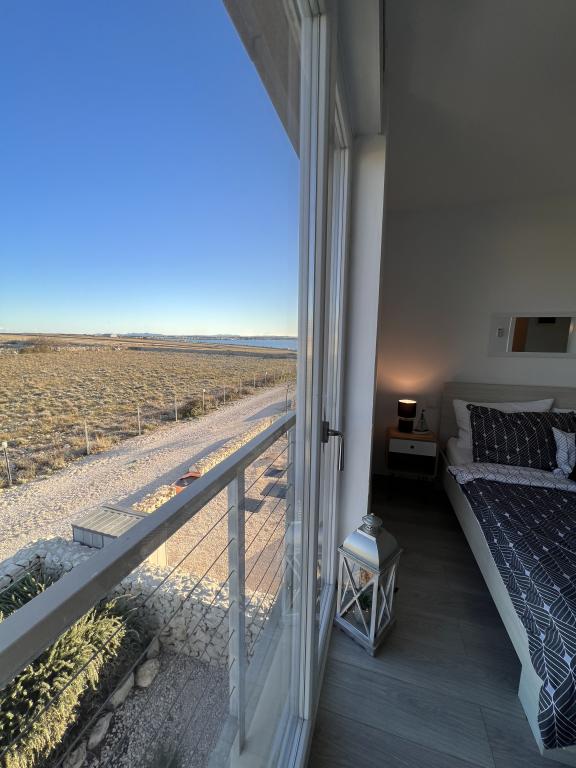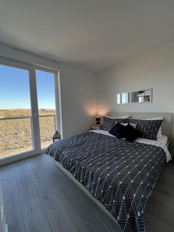 Moderně vybavený apartmán na poloostrově Rastavac s výhledem na Povljanu a Velebit jako součást komplexu Lijepi otok. Byt je plně vybaven pro pohodlný pobyt. Skládá se z 1 ložnice s manželskou postelí a přistýlkou pro 2 osoby v obývacím pokoji. Pro hosty apartmánů je k dispozici bezplatné parkoviště, bazén, gril a společné hřiště (houpačky, stolní tenis). Klidná písečná pláž se nachází přímo pod komplexem, 150 m od hotelu. Oblázkové a další veřejné písečné pláže jsou vzdálené 2 až 4 km. V bezprostřední blízkosti (200m) je nově otevřený kemp Amines Avalon (dostupné zázemí: obchod, posilovna, pekárna, restaurace, aquapark). Centrum města Povljana je 4 km daleko. Pokud hledáte klidnou dovolenou, východy a západy slunce, které vás zanechají bez dechu, čisté moře a nedotčenou přírodu – Povljana je pro vás tou správnou volbou.