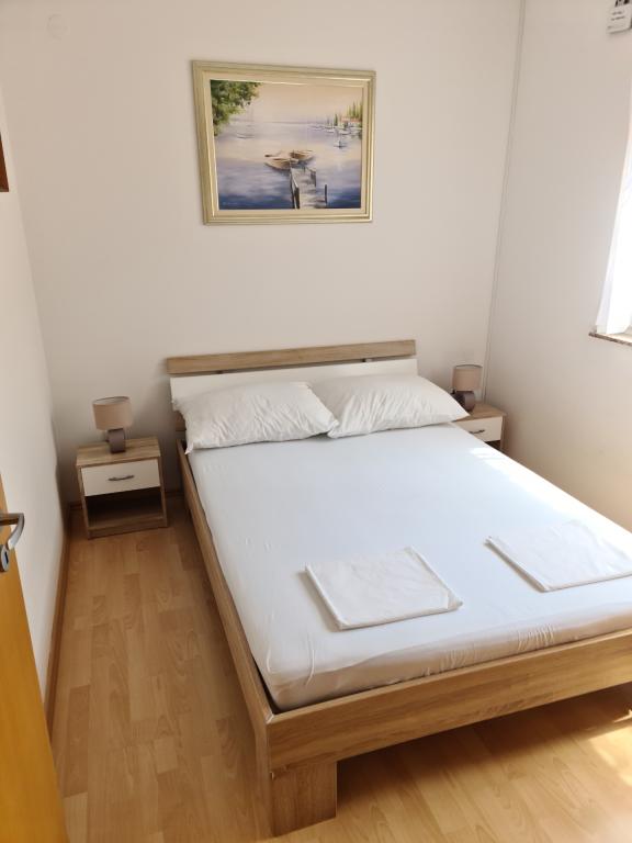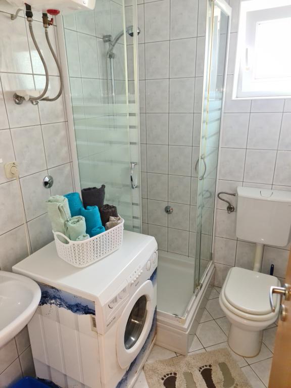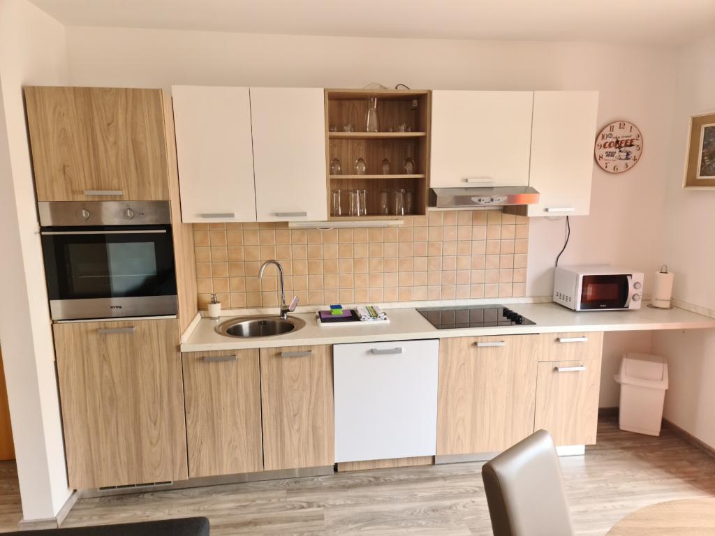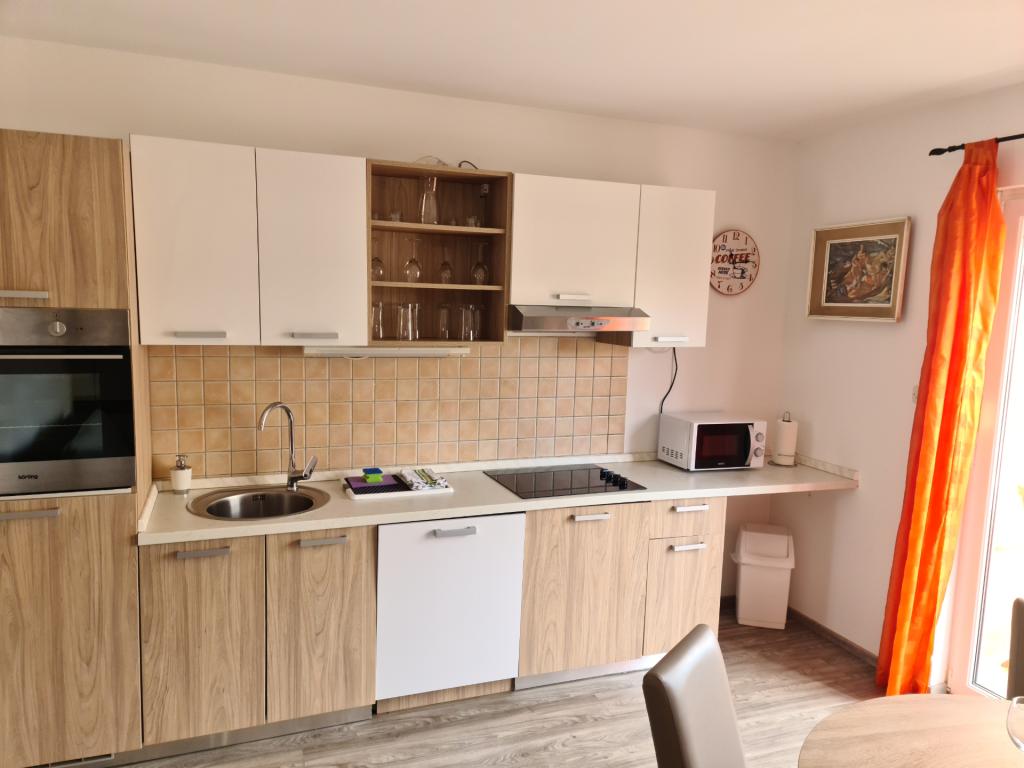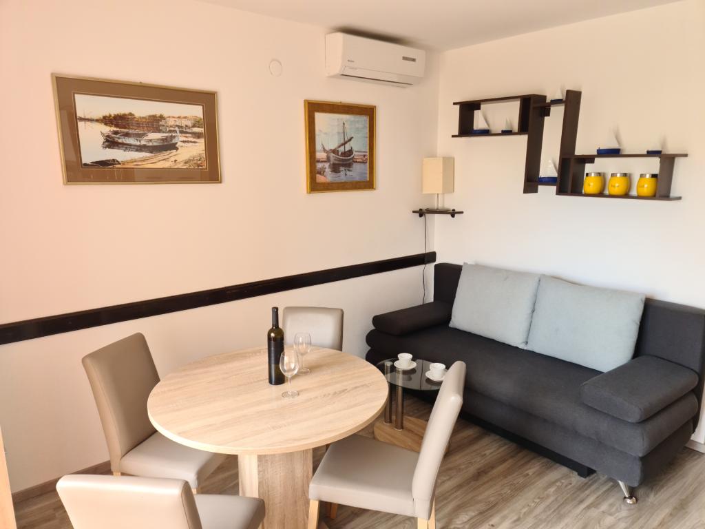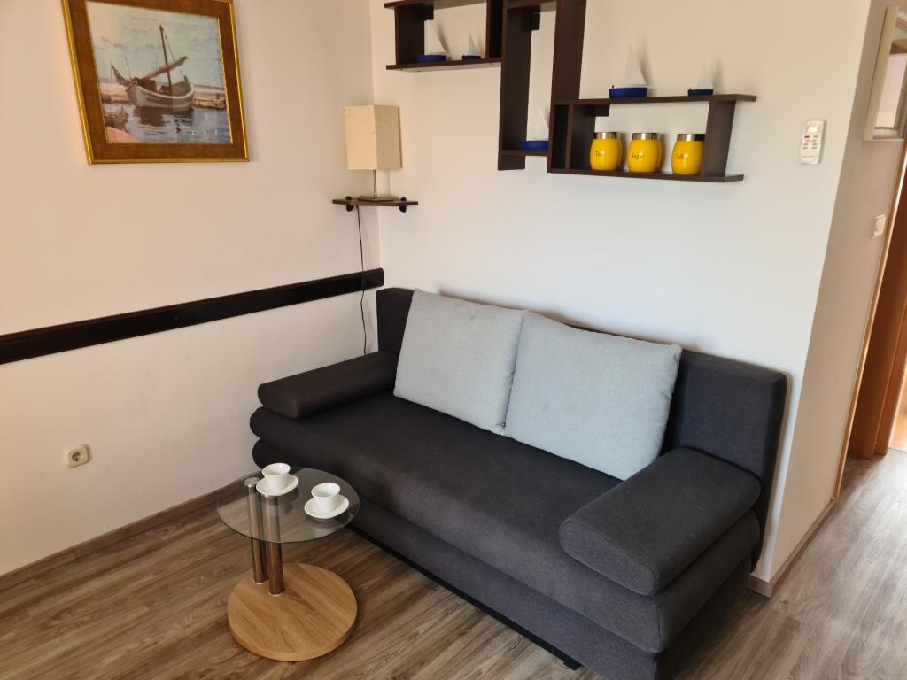 Plně vybavený apartmán 30 m2 s oddělenou ložnicí, balkonem a soukromým parkovacím místem, ideální pro páry nebo rodiny, se nachází v prvním patře městské vily, 1 minutu chůze od pláže a kaváren u moře. Skládá se z ložnice vybavené pohodlnou manželskou postelí a velkou posuvnou skříní, obývacího pokoje s kuchyní (lednice, myčka, varná deska s troubou, mikrovlnná trouba, kávovar, varná konvice) vybavenou rozkládací pohovkou, stolem a jídelními židlemi. , konferenční stolek a smart flat TV (Wi-Fi zdarma), koupelna se sprchovým koutem, toaletou a pračkou, apartmán je klimatizovaný. V bezprostřední blízkosti apartmánu se nachází dvě písečné/oblázkové pláže a také různá sportovní, rekreační a stravovací zařízení (kavárny, restaurace, tenisové kurty, aquapark...)