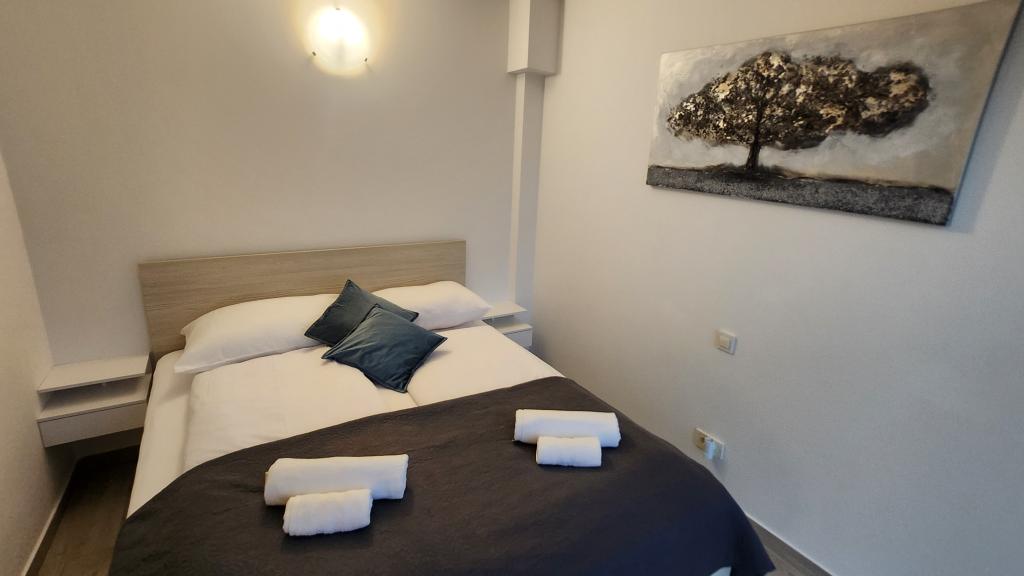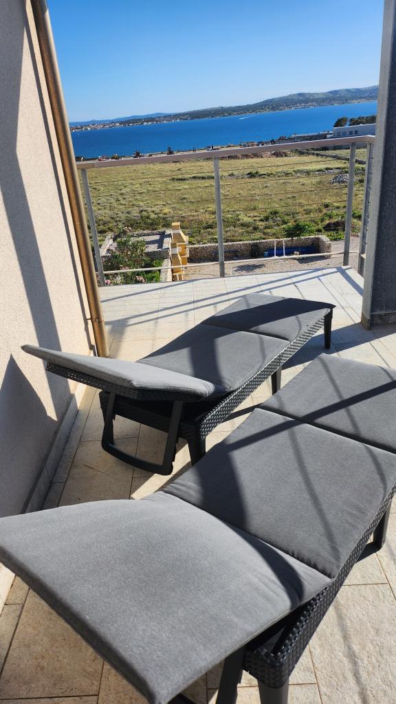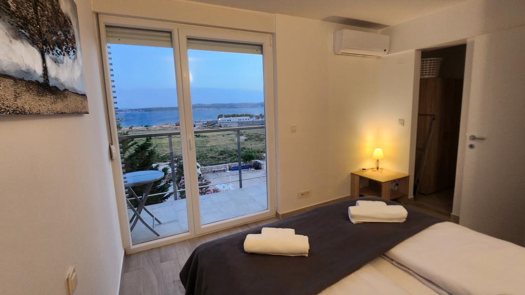 Moderně vybavený podkrovní byt mimo obydlenou část Povljany. V komplexu dvaceti bytů. Komplex má bazén, který je určen pro hosty všech apartmánů ve stejném komplexu. Výhled na moře. Písečná pláž 1 km od apartmánu, stejně jako centrum obce. Autem se na pláž dostanete za 5 minut.