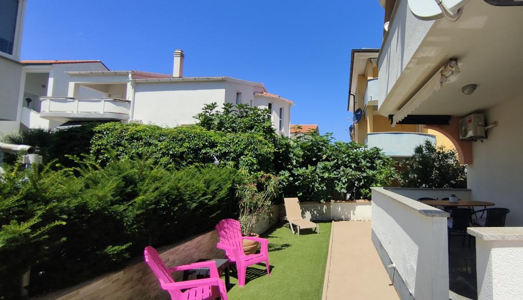 "Benedetti Apartments" se nachází téměř přímo u pláže, na perfektním místě, kde byste mohli téměř skočit přímo do moře! Jsou umístěny na malém, klidném místě, ideální pro relaxaci, 2 řady od naší hlavní pláže. Je to příležitost uniknout shonu a začít dokonalou dovolenou. Apartmány zdobí upravené zahrady, které vytvářejí ideální prostředí pro relaxaci. Představte si sami sebe na lehátkách s koktejlem, obklopeni klidem a květinami. Oblázková pláž "Mali Dubrovnik" je vzdálena pouhých 20 m (2 minuty) a písečná pláž je vzdálena pouhých 5 minut chůze. Restaurace jsou vzdálené 50 m, obchod 30 m od apartmánu. Pro větší nákupy se můžete dostat do centra Povljany snadnou chůzí nebo autem (600 m). Kavárna a tenisový kurt jsou jen 20 m od hotelu, přímo přes ulici. Apartmány se nacházejí v přízemí, ideální pro rodiny s dětmi a páry, které milují klidnou dovolenou. Uživatelé apartmánů mají k dispozici bezplatné parkování a internet, možnost využití grilu a k dispozici jsou společné venkovní plochy pro relaxaci. Zaparkujte auto a užívejte si!
