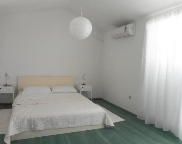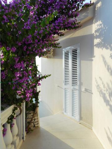 Apartmán je součástí krásně zařízeného domu s velkou zahradou. Vše v samotném apartmánu je zařízeno střídmě a je vhodné pro dovolenou. Velká terasa je přístupná z obou pokojů a má výhled na západ slunce. Je ve stínu celé dopoledne, ideální pro kávu s výhledem na moře. Zahrada je nádherný středomořský prostor plný borovic, olivovníků a nesmrtelných stromů s k dispozici lehátky a zahradním nábytkem a táhne se od domu až k pláži. Na pozemku je dostatek parkovacích míst. Fotografie nedokážou popsat pohodlí, čistotu, světlo a všechny ostatní vlastnosti tohoto ubytování. Hostitelka je mimořádně milá.