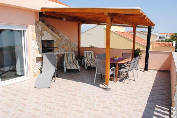 Apartmány Vidaković se nacházejí v rodinném domě, který nabízí komfortní ubytování v klidné části města Povljana. Nachází se 900 metrů od hlavní pláže v Dubrovníku, kde si můžete vychutnat slunce nebo stín borovic po celý den. Povljana je okouzlující malé místo, krásné pláže s teplým a mělkým mořem s pískem jsou ideální pro rodiny s dětmi. Všechny apartmány jsou pěkně zařízené a plně vybavené v ceně včetně parkovacích míst, využití dvora, klimatizace a grilu, stejně jako pobytové taxy. V případě potřeby máme pro dítě také přistýlku. Na terase bytu ve 2. patře domu je krytá část s grilem, venkovní sprchou a krásným výhledem na moře. Těšíme se na váš příjezd !!!!!!