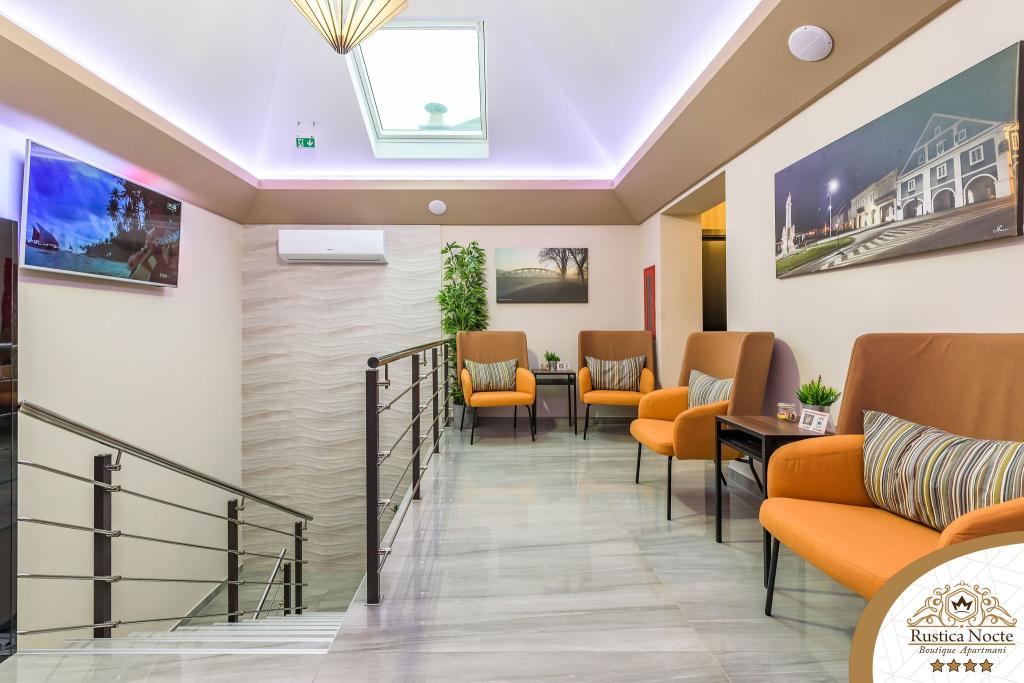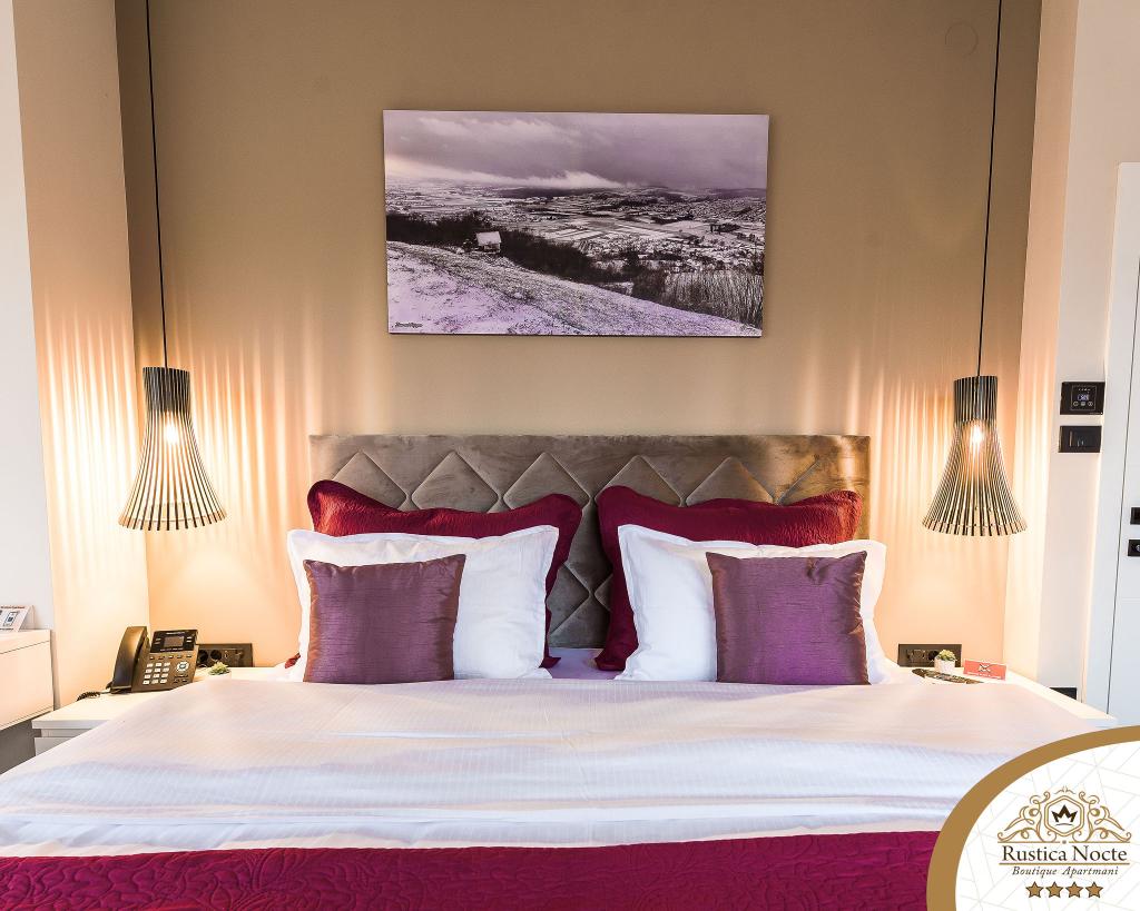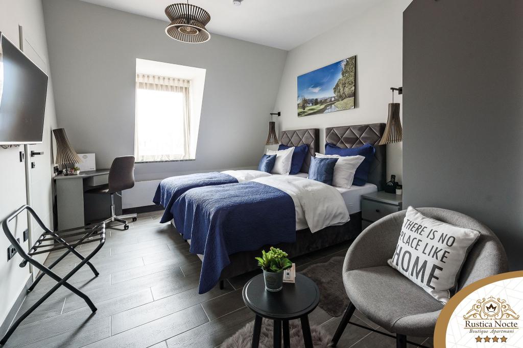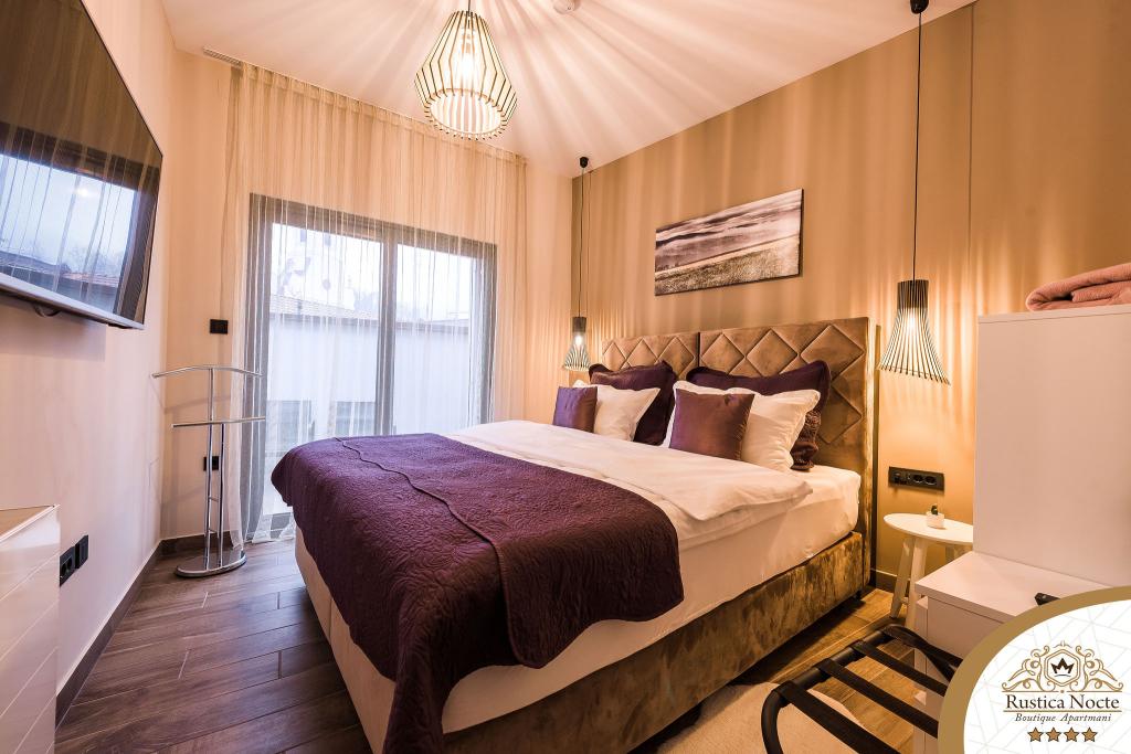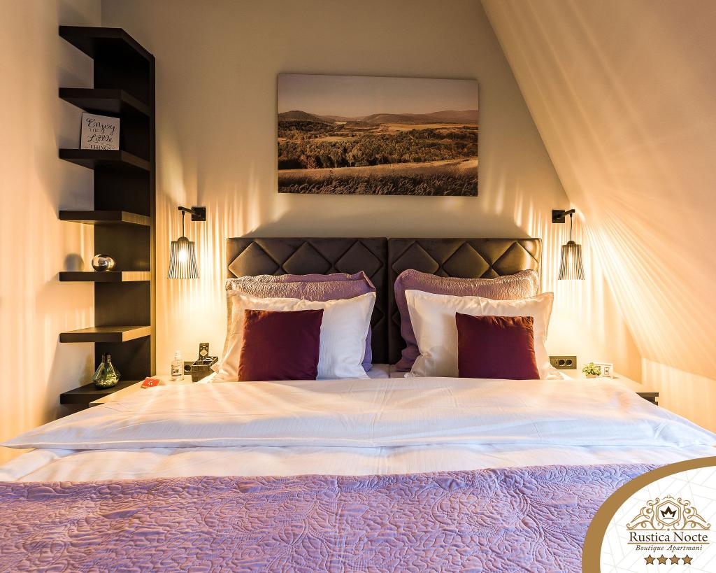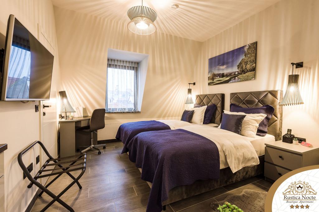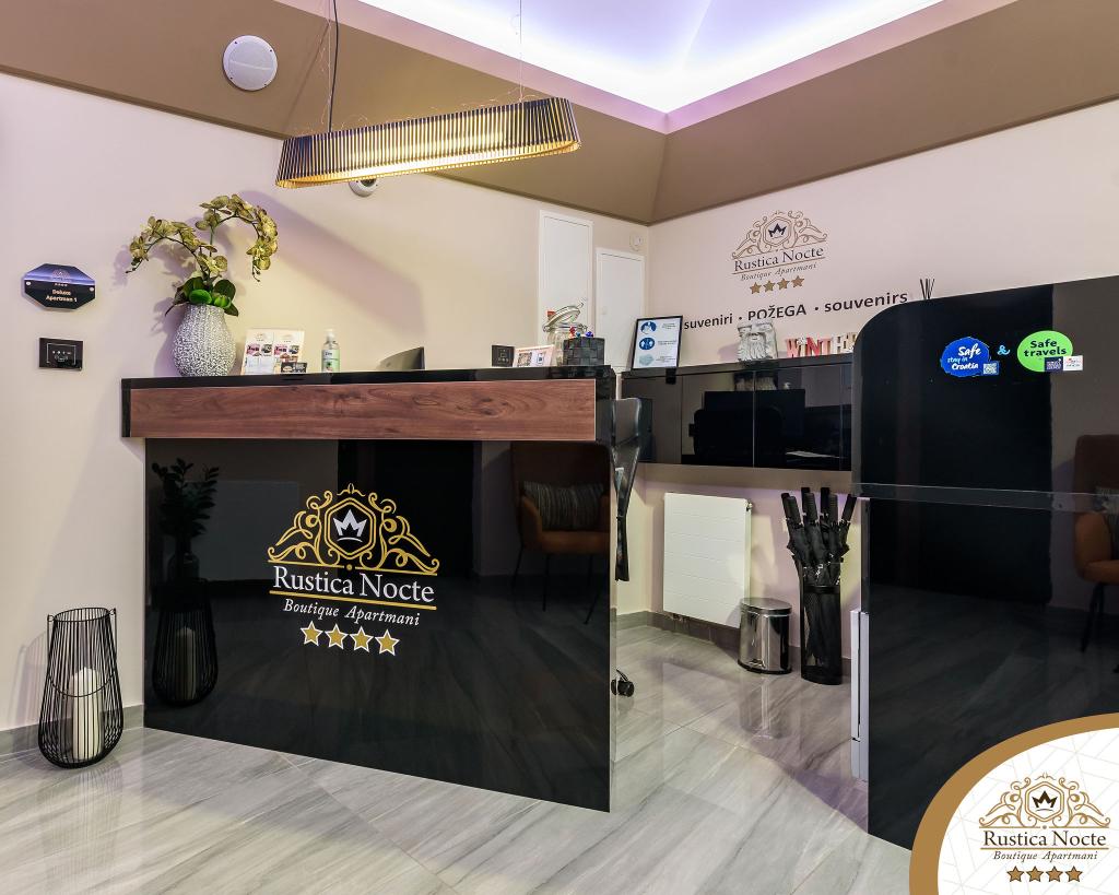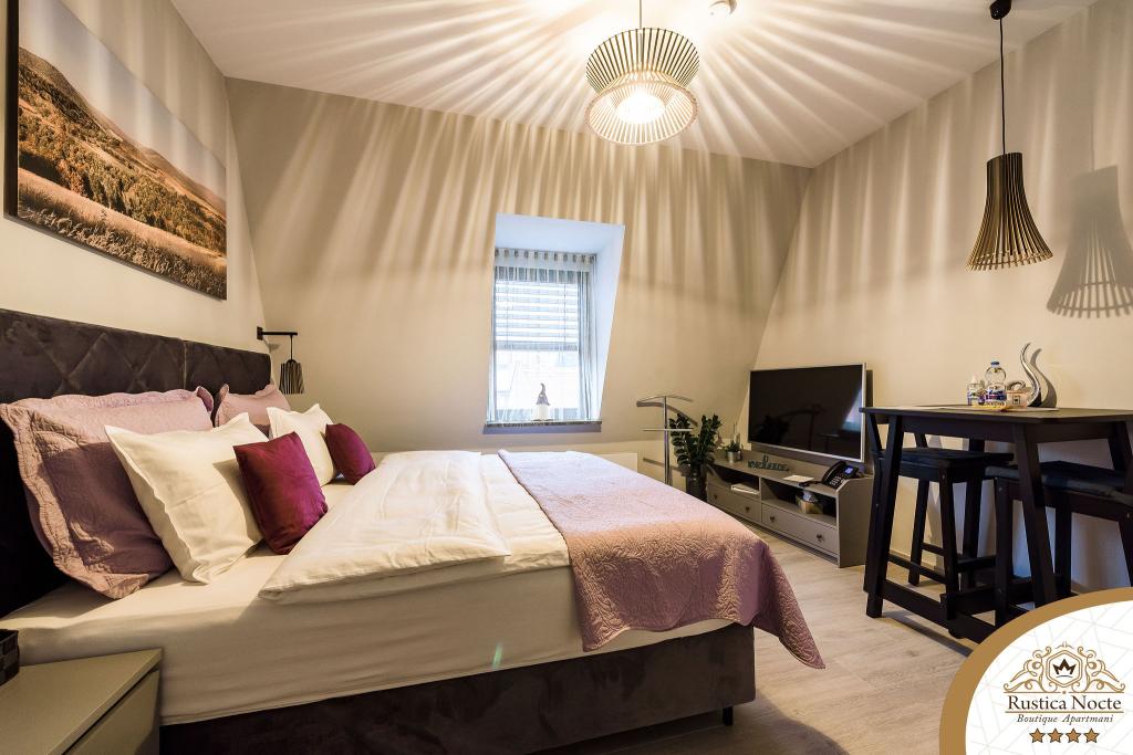 V samém srdci Slavonie, na začátku pěší zóny v Požeze, jsou apartmány Rustica Nocte Boutique ideálním místem pro dovolenou snů. Abychom Vám dovolenou co nejvíce zpříjemnili, naše moderní apartmány Vám nabízí špičkové vybavení a vyzdvihnout bychom chtěli především chytrý systém řízení celého apartmánu, bezplatné vysokorychlostní Wi-Fi a pevné i bezdrátové připojení k internetu, King size boxspringové postele, digitální trezory, ultra HD televizory Ambilight 50palcové TV přijímače s Netflixem, satelitní a místní programy a Ambilight LED osvětlení na oknech, větrané a vytápěné koupelny a plně vybavené kuchyně v každém z apartmánů. Součástí každého apartmánu je také minibar s nealkoholickými a alkoholickými nápoji a občerstvením. Součástí apartmánů je i dětský koutek se stolky, hračkami, omalovánkami a hracími podložkami. Díky tomu všemu si můžete naplánovat dovolenou velmi bezstarostně.