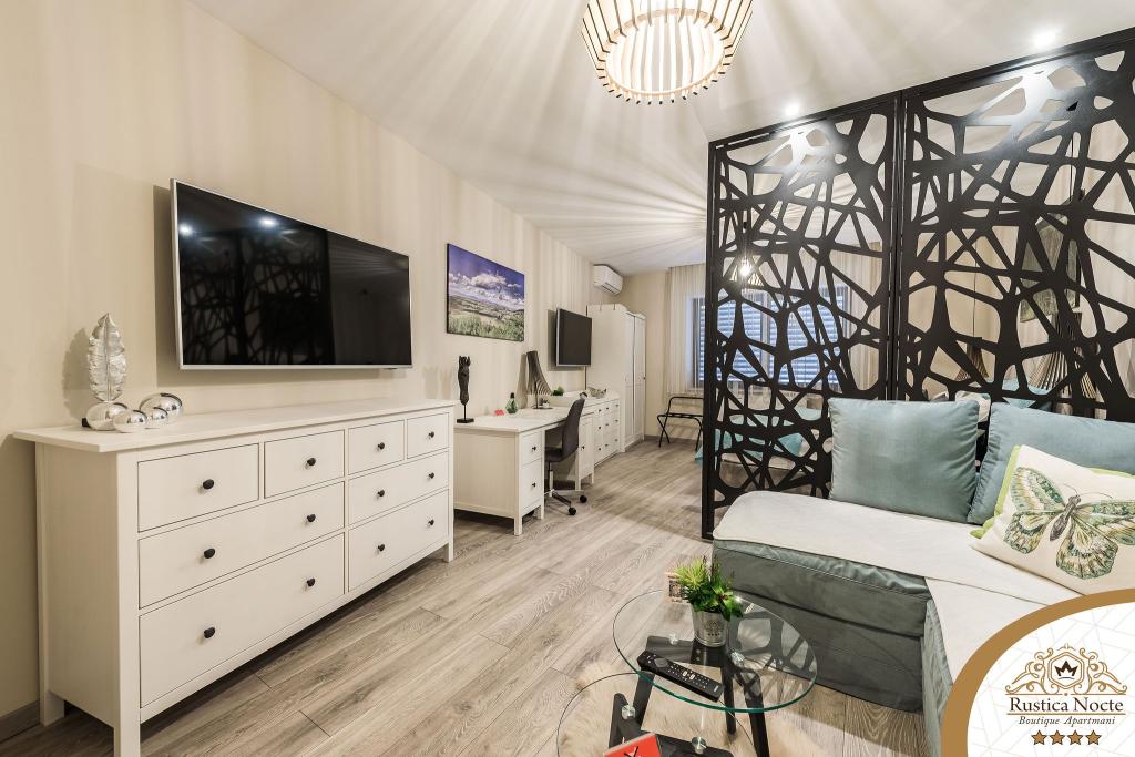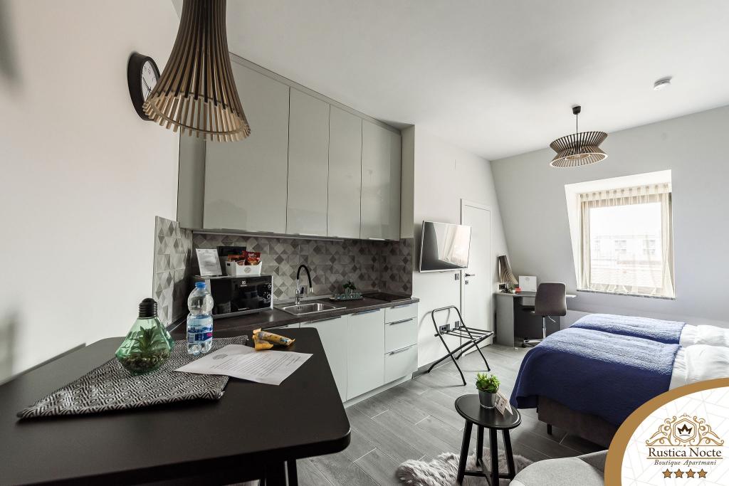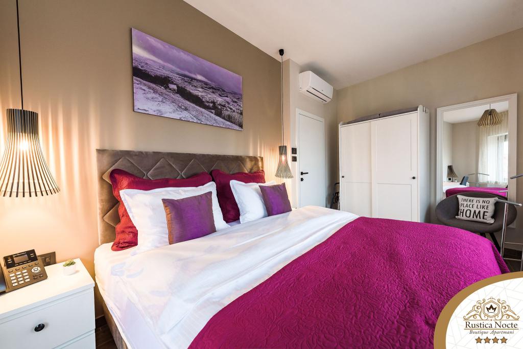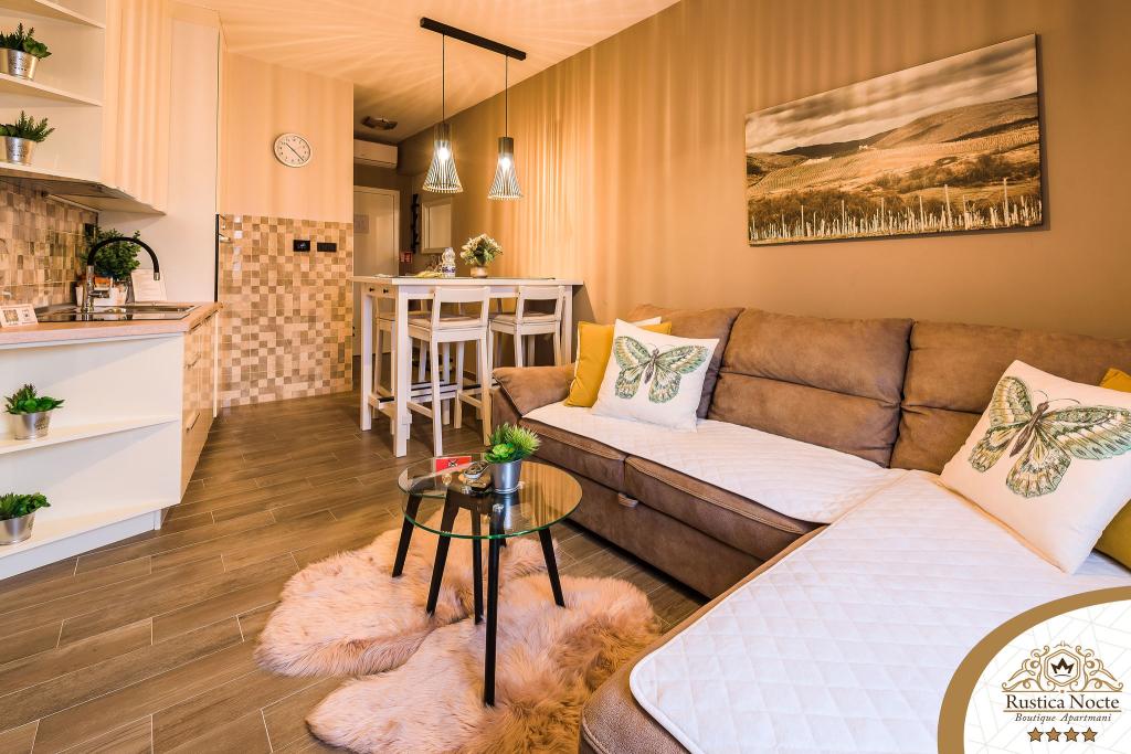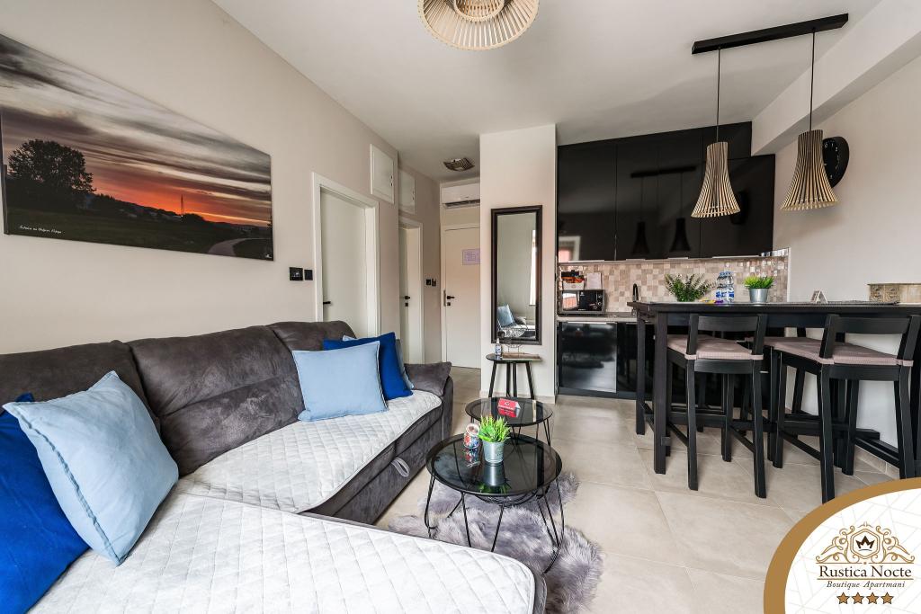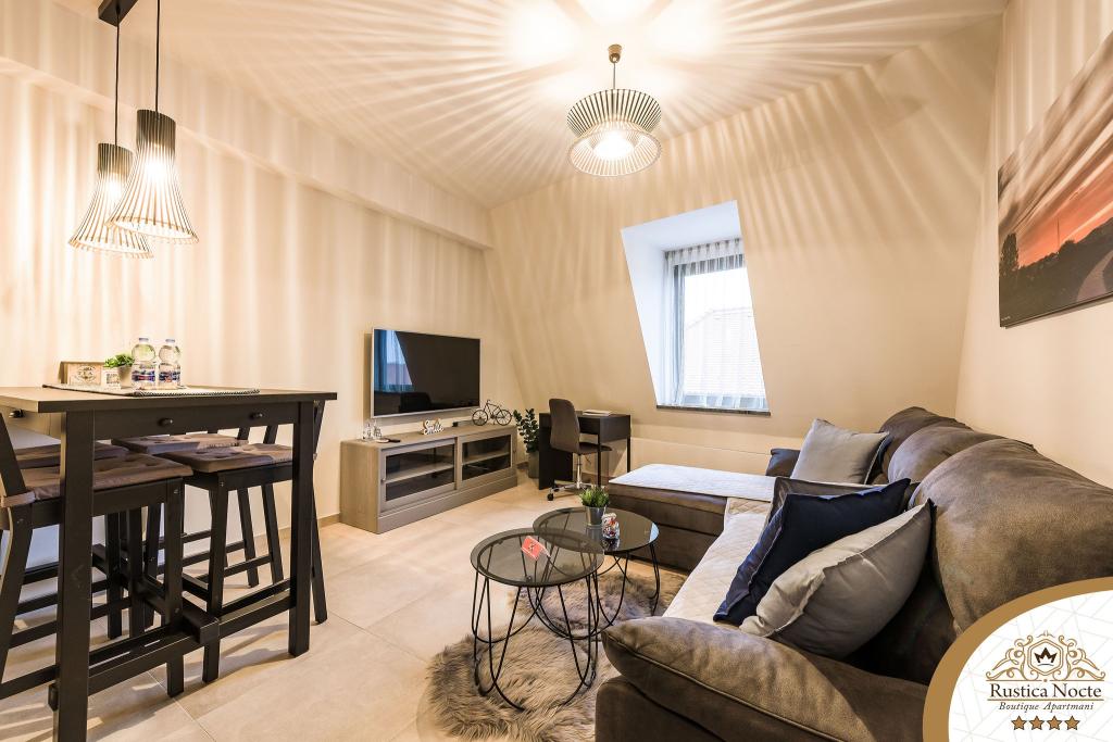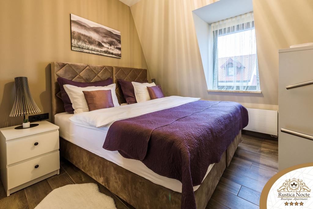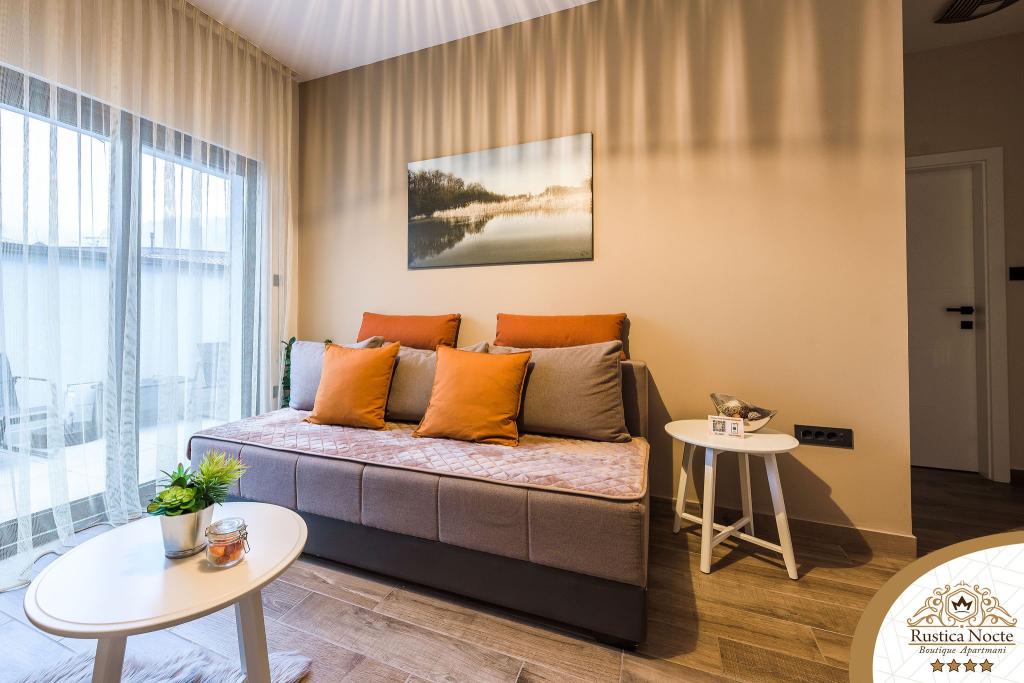 V samém srdci Slavonie, na začátku pěší zóny v Požeze, jsou apartmány Rustica Nocte Boutique ideálním místem pro dovolenou snů. Abychom Vám dovolenou co nejvíce zpříjemnili, naše moderní apartmány Vám nabízí špičkové vybavení a vyzdvihnout bychom chtěli především chytrý systém řízení celého apartmánu, bezplatné vysokorychlostní Wi-Fi a pevné i bezdrátové připojení k internetu, King size boxspringové postele, digitální trezory, ultra HD televizory Ambilight 50palcové TV přijímače s Netflixem, satelitní a místní programy a Ambilight LED osvětlení na oknech, větrané a vytápěné koupelny a plně vybavené kuchyně v každém z apartmánů. Součástí každého apartmánu je také minibar s nealkoholickými a alkoholickými nápoji a občerstvením. Součástí apartmánů je i dětský koutek se stolky, hračkami, omalovánkami a hracími podložkami. Díky tomu všemu si můžete naplánovat dovolenou velmi bezstarostně.