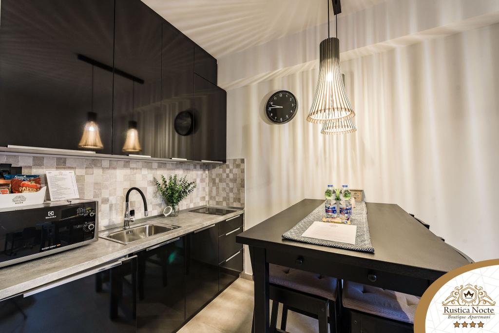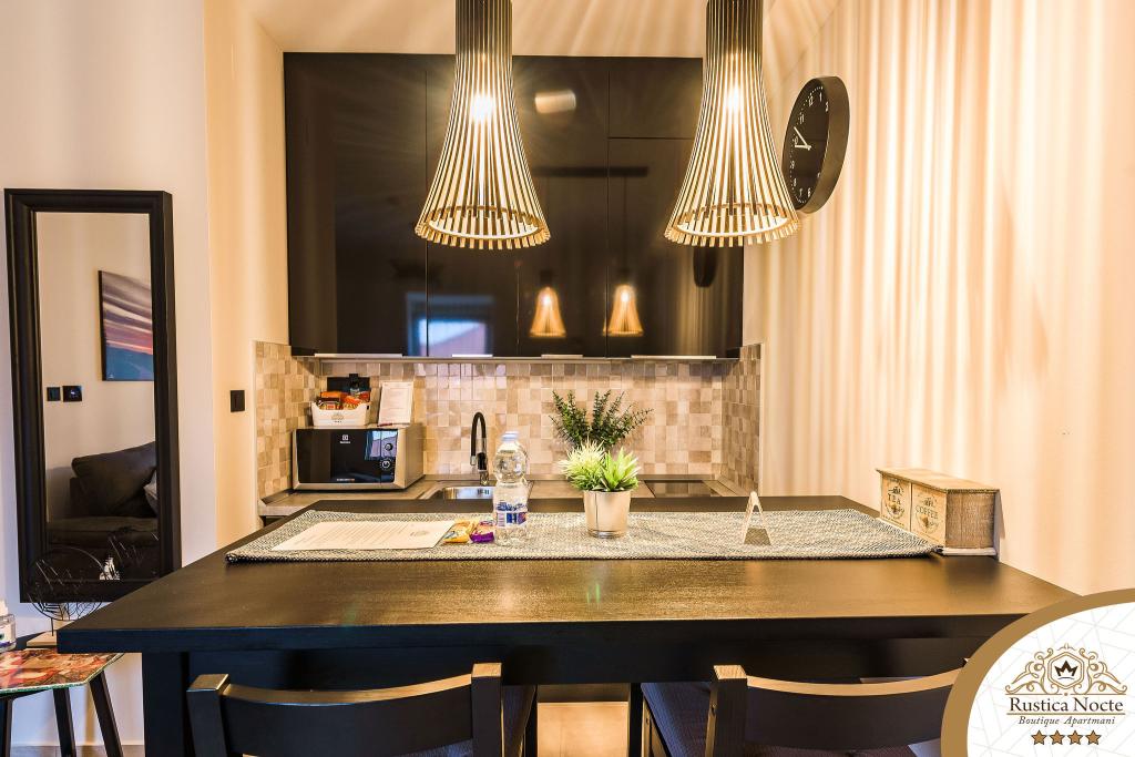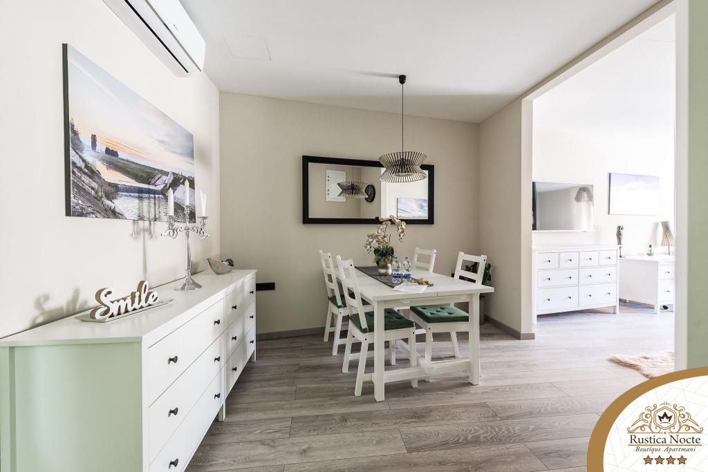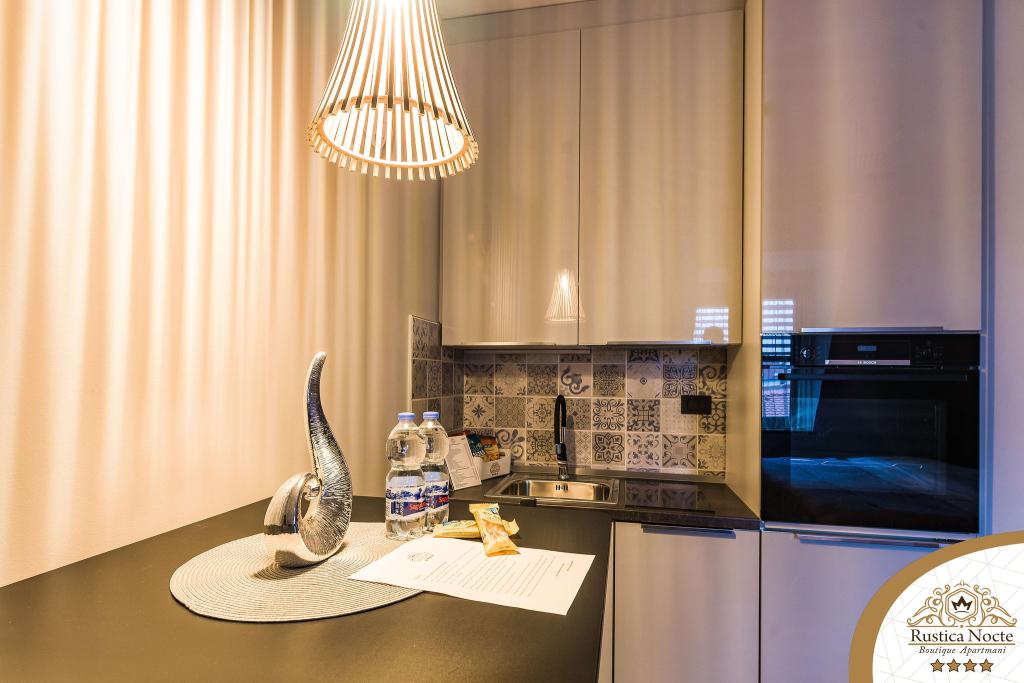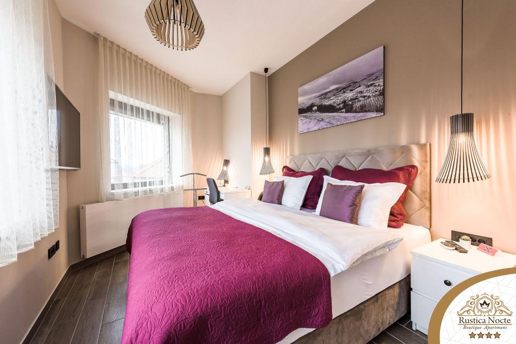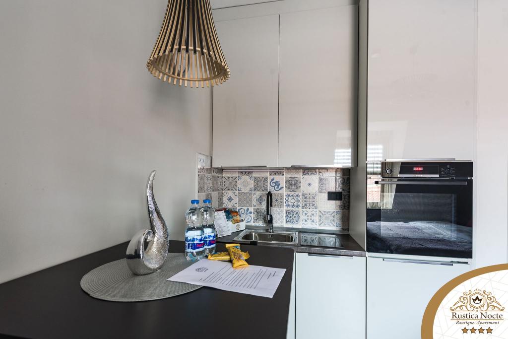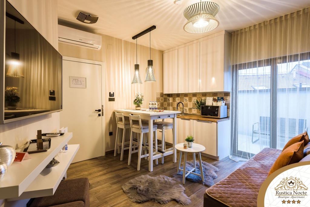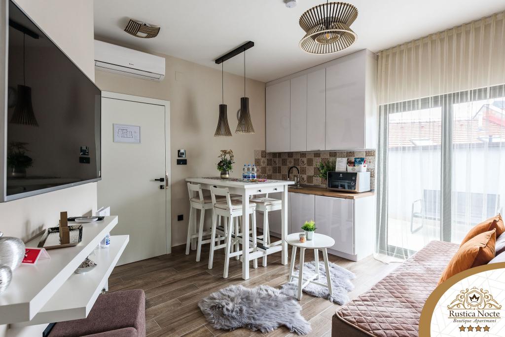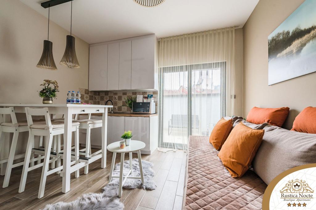 V samém srdci Slavonie, na začátku pěší zóny v Požeze, jsou apartmány Rustica Nocte Boutique ideálním místem pro dovolenou snů. Abychom Vám dovolenou co nejvíce zpříjemnili, naše moderní apartmány Vám nabízí špičkové vybavení a vyzdvihnout bychom chtěli především chytrý systém řízení celého apartmánu, bezplatné vysokorychlostní Wi-Fi a pevné i bezdrátové připojení k internetu, King size boxspringové postele, digitální trezory, ultra HD televizory Ambilight 50palcové TV přijímače s Netflixem, satelitní a místní programy a Ambilight LED osvětlení na oknech, větrané a vytápěné koupelny a plně vybavené kuchyně v každém z apartmánů. Součástí každého apartmánu je také minibar s nealkoholickými a alkoholickými nápoji a občerstvením. Součástí apartmánů je i dětský koutek se stolky, hračkami, omalovánkami a hracími podložkami. Díky tomu všemu si můžete naplánovat dovolenou velmi bezstarostně.