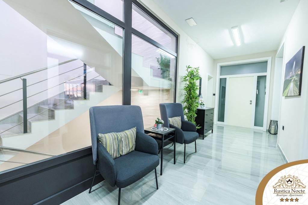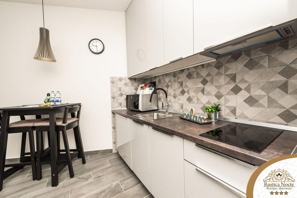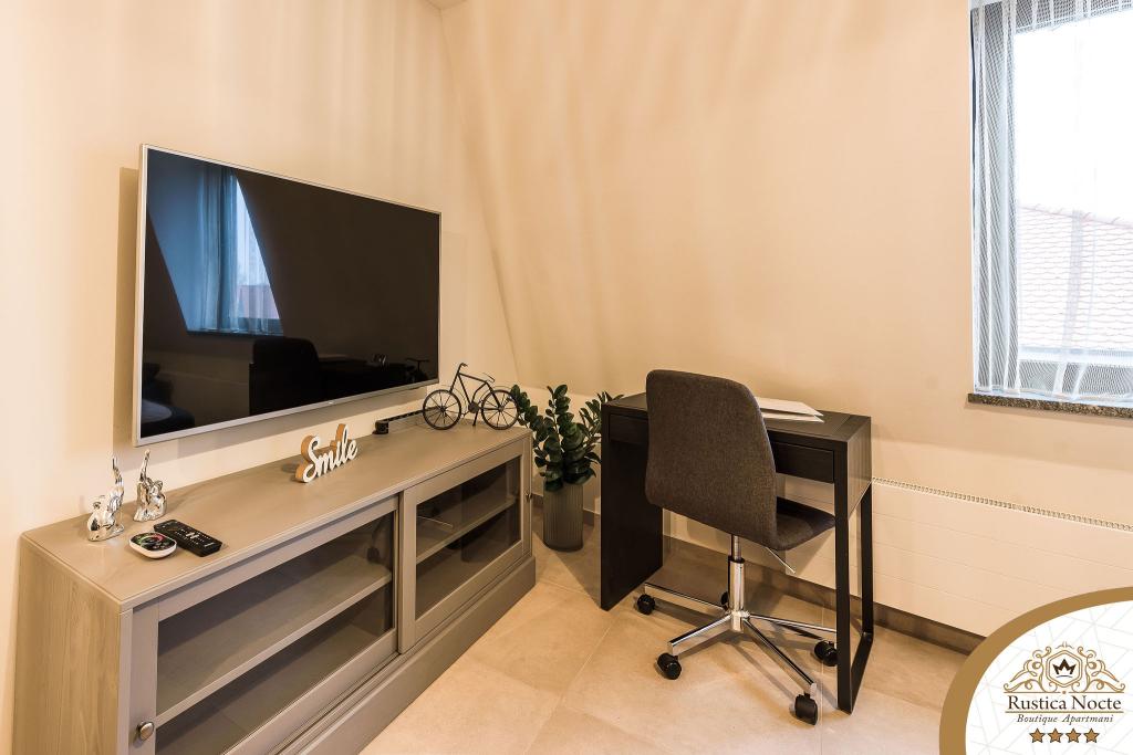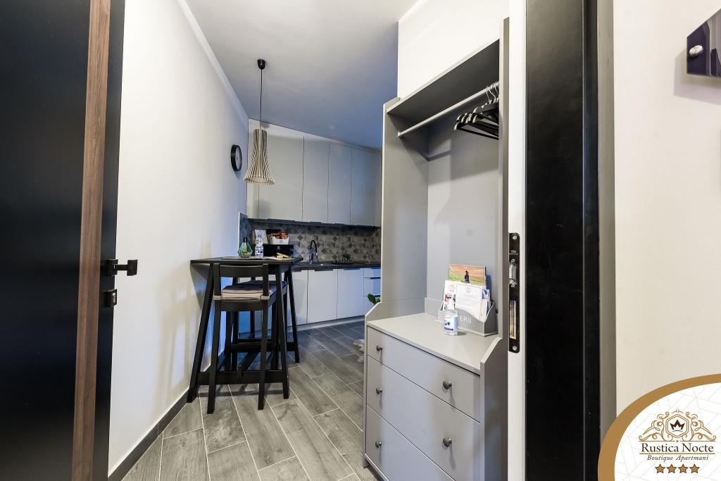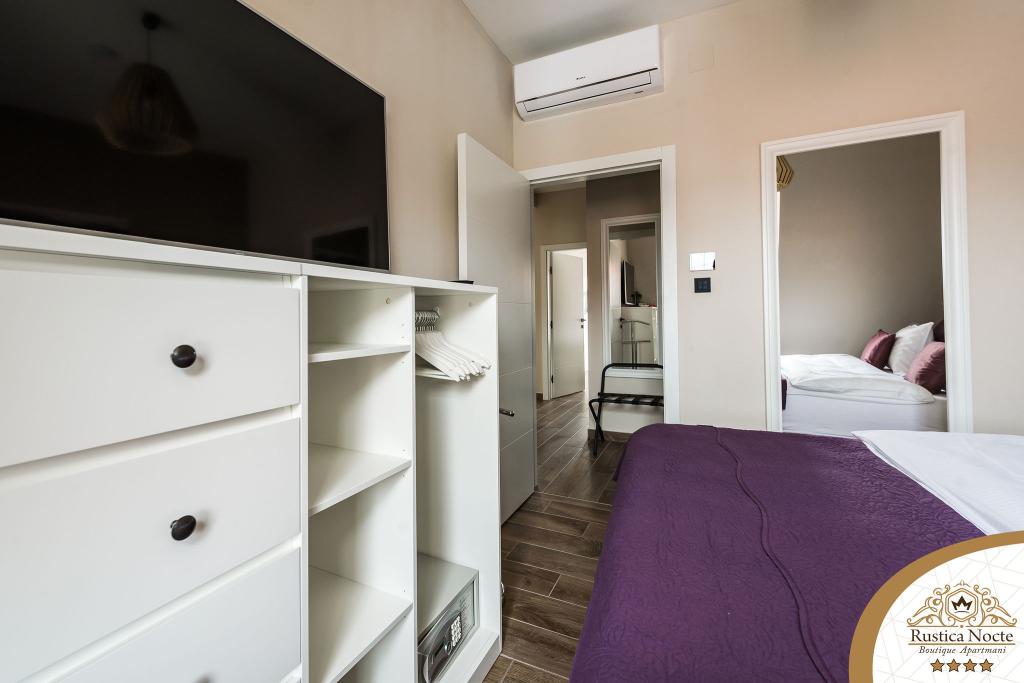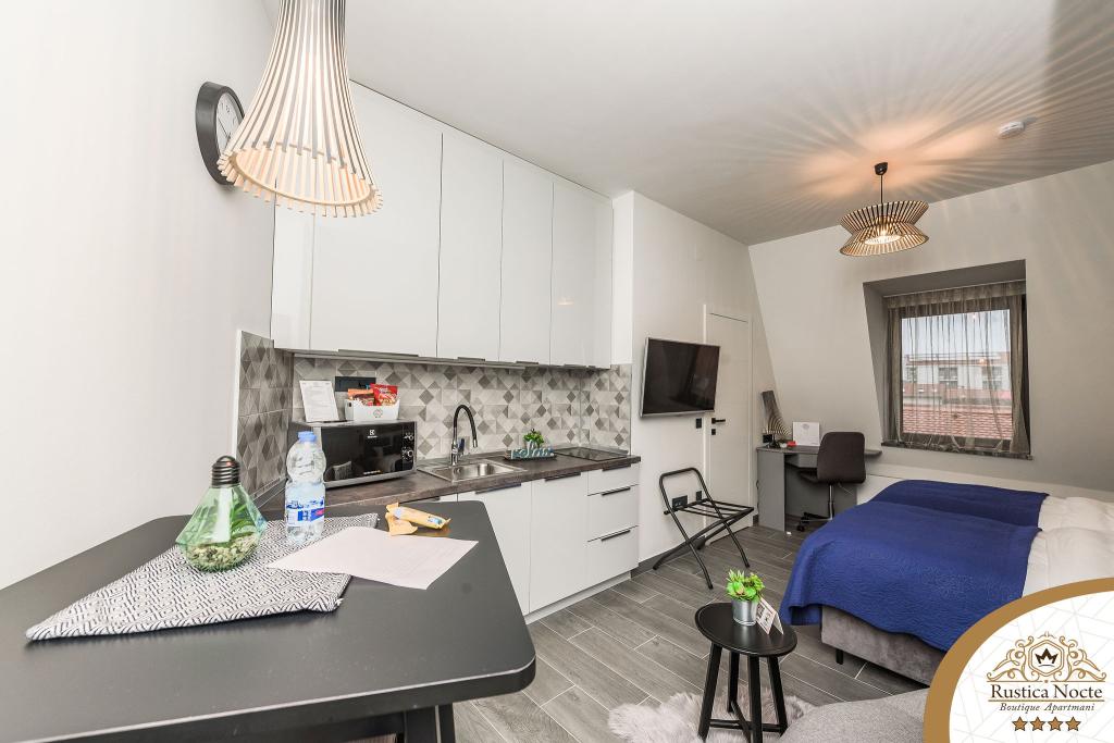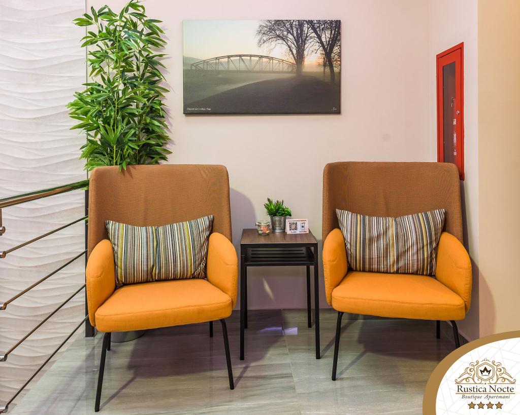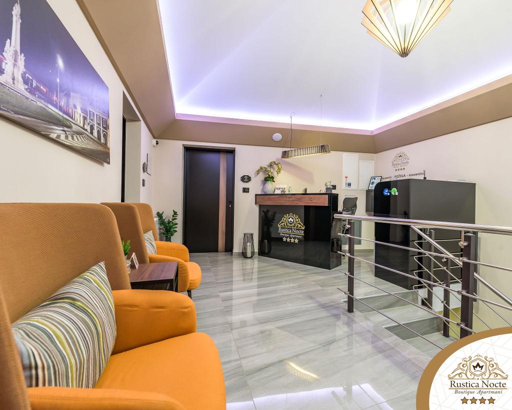 V samém srdci Slavonie, na začátku pěší zóny v Požeze, jsou apartmány Rustica Nocte Boutique ideálním místem pro dovolenou snů. Abychom Vám dovolenou co nejvíce zpříjemnili, naše moderní apartmány Vám nabízí špičkové vybavení a vyzdvihnout bychom chtěli především chytrý systém řízení celého apartmánu, bezplatné vysokorychlostní Wi-Fi a pevné i bezdrátové připojení k internetu, King size boxspringové postele, digitální trezory, ultra HD televizory Ambilight 50palcové TV přijímače s Netflixem, satelitní a místní programy a Ambilight LED osvětlení na oknech, větrané a vytápěné koupelny a plně vybavené kuchyně v každém z apartmánů. Součástí každého apartmánu je také minibar s nealkoholickými a alkoholickými nápoji a občerstvením. Součástí apartmánů je i dětský koutek se stolky, hračkami, omalovánkami a hracími podložkami. Díky tomu všemu si můžete naplánovat dovolenou velmi bezstarostně.