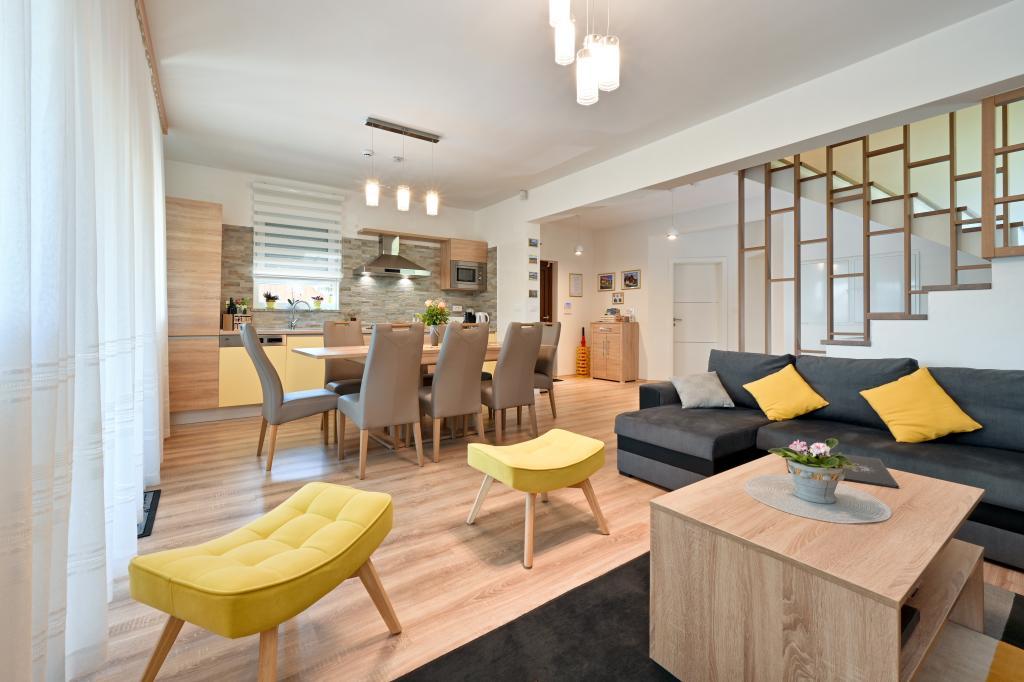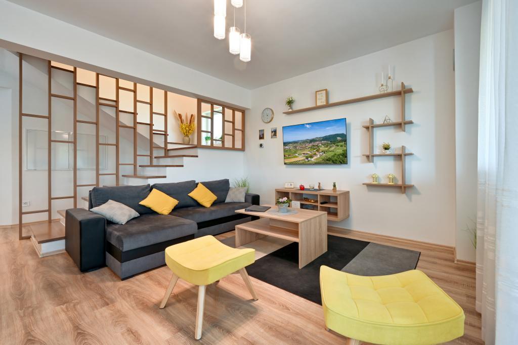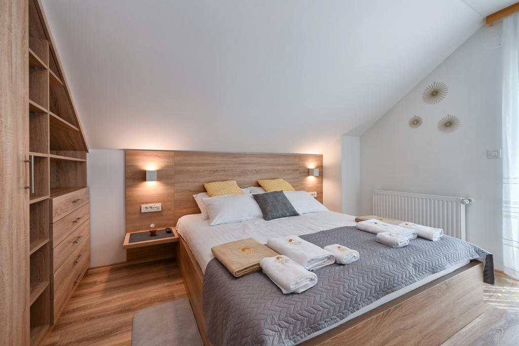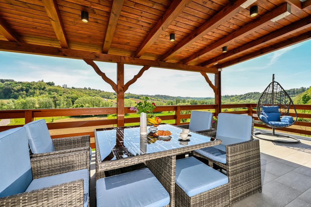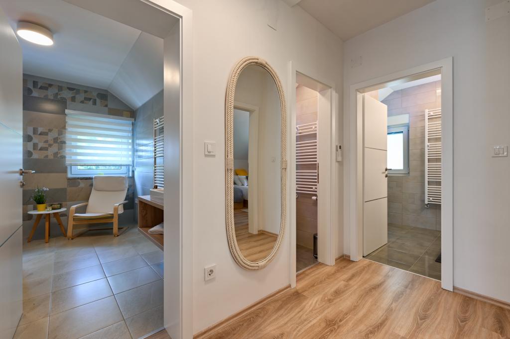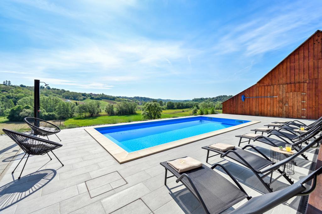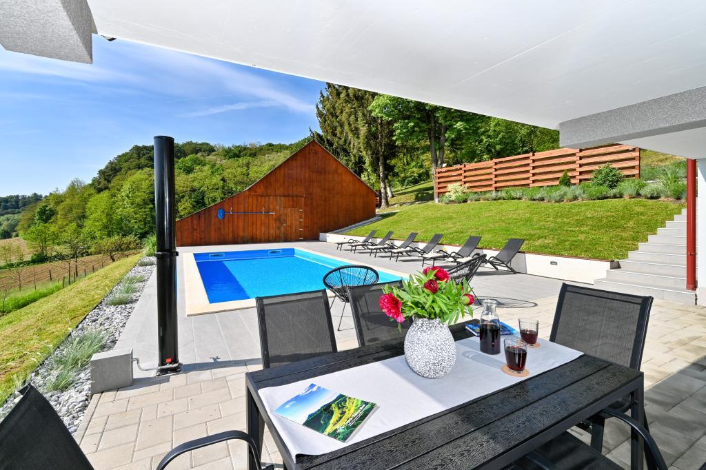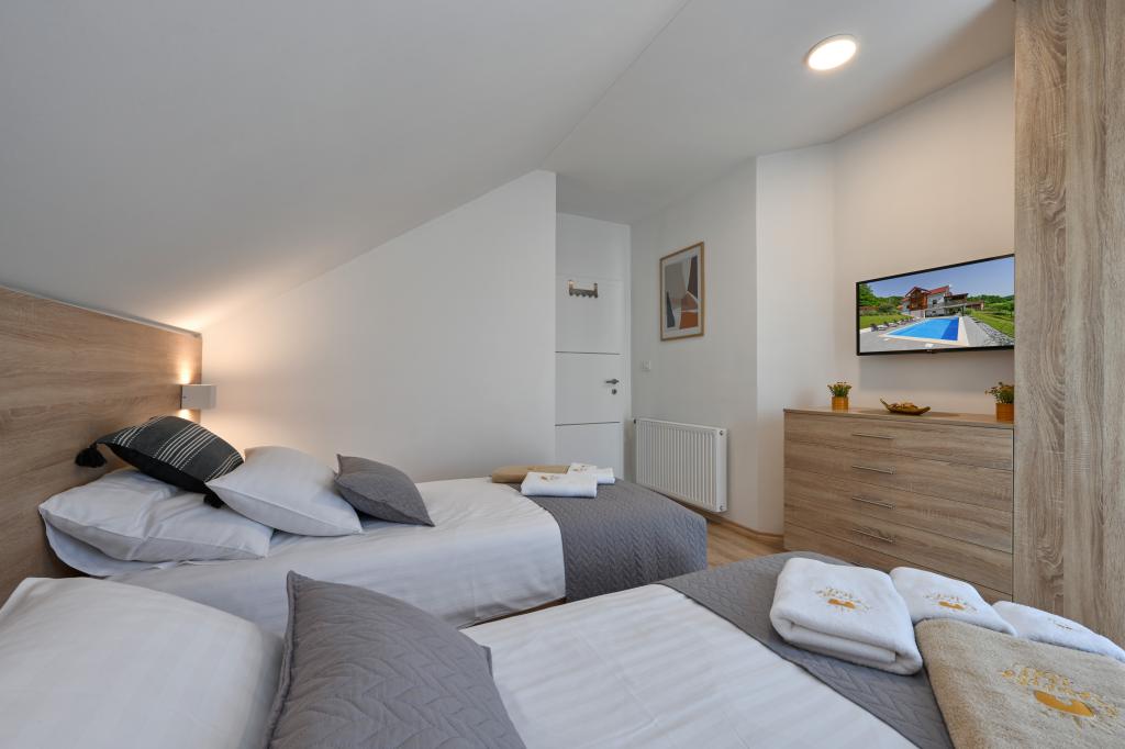 Tento neuvěřitelný dům se nachází na jednom z mnoha kopců krásného Zagorje. Obklopen kopci, vinicemi, sady a lesy, je ideálním místem pro zábavu a odpočinek v přírodě. Nádherný výhled, který se táhne, vám umožní vychutnat si krásné východy slunce, podle čehož dům dostal své jméno. Sunrise Hill je zařazen do kategorie 4* a poskytuje pohodlné ubytování pro 8 osob a je primárně orientován na rodiny s dětmi. Je ideální pro klidnou dovolenou nebo společenské setkání, ale také pro rekreaci a sport. Kromě upravené zahrady, která nabízí velký bazén se sprchou a krytou a otevřenou terasou, gril, domeček na hraní, parkoviště, zdobí dům pečlivě zdobený interiér, kterému dominuje dřevo a světlé a uklidňující tóny. Dům se skládá z přízemí s prostorným obývacím pokojem s kuchyní a jídelnou, koupelnou, dětskou hernou se stolním fotbalem, herní konzolí PS 4 a deskovými hrami a prostornou terasou, která láká k odpočinku a socializaci. V prvním patře domu jsou tři ložnice.