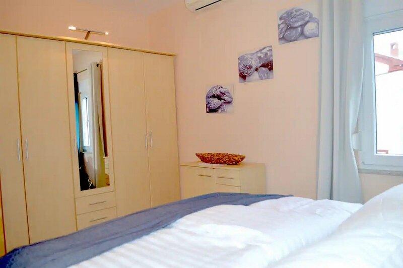 Plně a moderně vybavený apartmán v elitní části Prek. Zařízení se nachází 6 minut od centra Preku a 5 minut od první pláže. Na dobře udržované pláži s doplňkovým vybavením, lehátka, slunečníky, sprcha, převlékárna - vše zdarma. Apartrman nabízí bezplatné parkování v garáži, využití grilu a venkovní prostor pro obědy/večeře. Využití venkovní sprchy a prostorného dvora s krásně upravenou zahradou se sezónní zeleninou a ovocem. Kromě stávajícího vybavení byt nabízí kávovar, varnou konvici, toustovač, mixér, obrovskou side by side lednici s mrazákem a s ledem nebo studenou vodou, trezor v jedné místnosti, balkon s nábytkem na kávu pro dva v svěží ranní hodiny, lehátko na opalování, s houpačkou na dvoře, velkým slunečníkem atd., všechna okna mají sítě proti komárům, velká terasa má ventilátor a další stolní hry, Netflix zdarma, ...