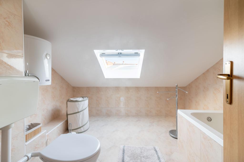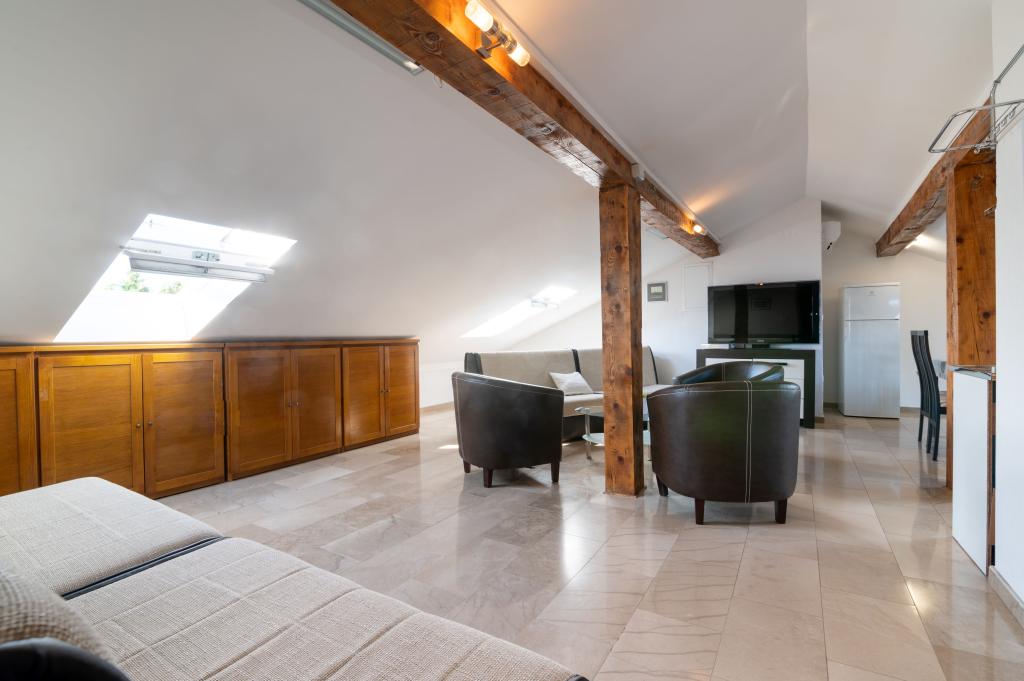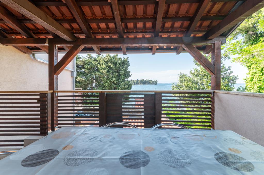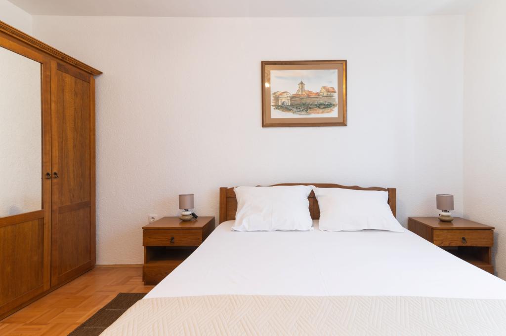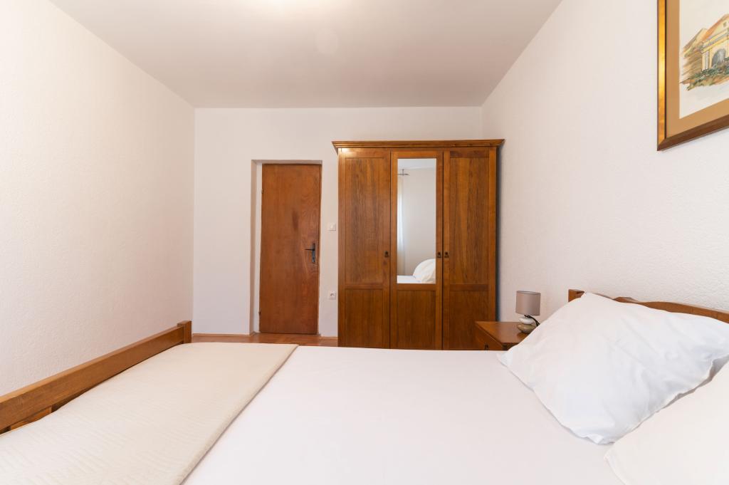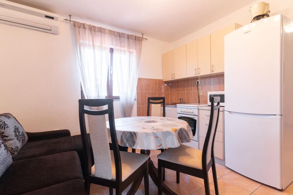 Dům se nachází v první řadě k moři, nedaleko centra Prek. Komfortní, nově zrekonstruovaný byt se nachází v prvním patře domu a má 2 ložnice, dětský pokoj, obývací pokoj s kuchyní, koupelnu a terasu. Pokoje mají přístup na balkon s výhledem na pláž a moře. Z obývacího pokoje se dostanete na terasu s výhledem na pláž a moře. V obývacím pokoji je přistýlka. Komfortní garsoniéra 60 m2 se 4 lůžky, kuchyní, obývacím pokojem a koupelnou se nachází v podkroví domu. V přízemí je společná velká terasa, kterou mohou využívat hosté ze studiových apartmánů. Na dvoře máme také velký gril a pec na chleba. Parkování pro auta je zajištěno ve dvoře. Apartmány mají klimatizaci, satelitní TV a Wi-Fi připojení.
