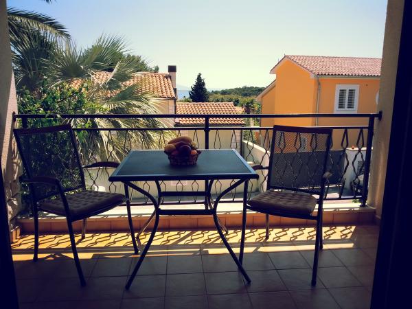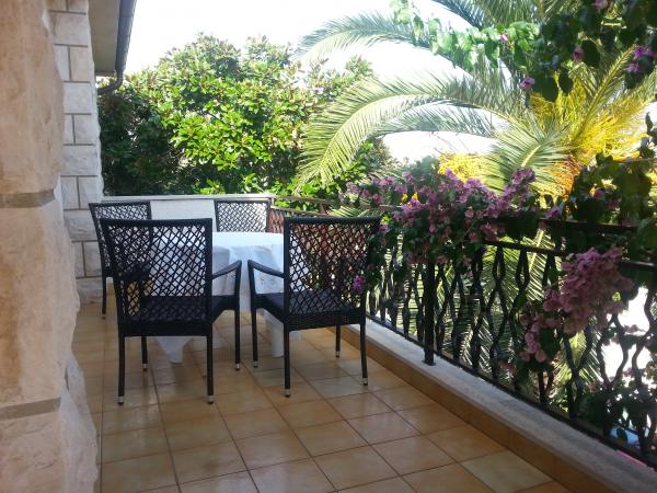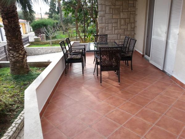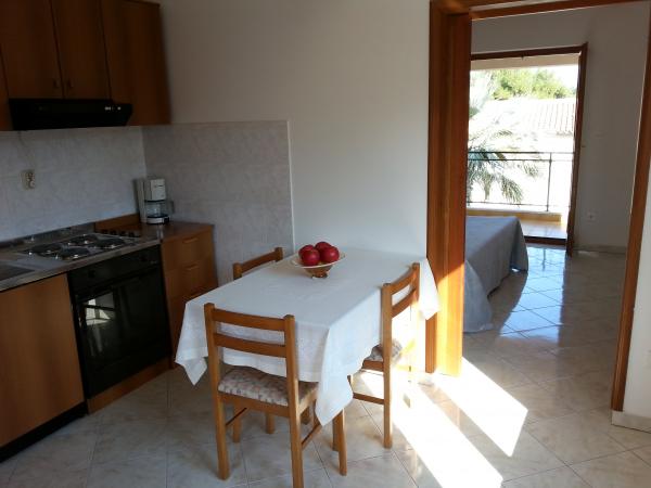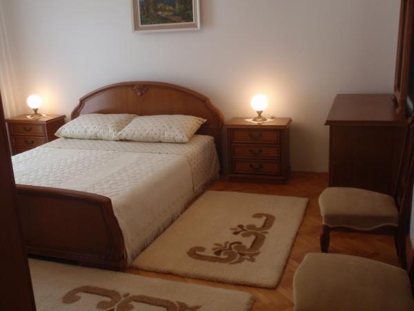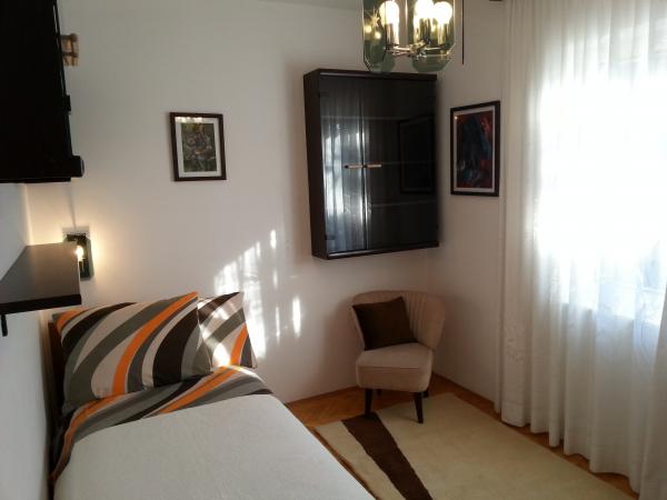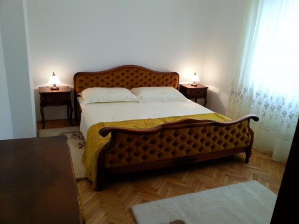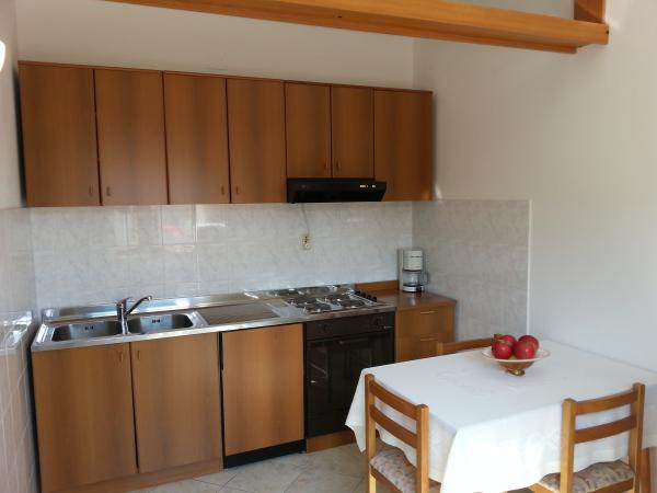 Apartmány se nacházejí v rodinném domě v klidné části města Premantura 300 m od moře. Jeden apartmán pojme 5 osob, zatímco druhý je vybaven tak, aby ubytovat 2 osoby. V prvním bytě v přízemí se nachází kuchyň, prostorný obývací pokoj, který je propojen s oddílů jídelny a má přímý přístup na velkou terasu se stolem a židlemi, koupelna se sprchovým koutem a samostatné WC. Schodiště vede do prvního patra, kde jsou tři ložnice: jednolůžkový pokoj, dvě dvoulůžkové ložnice s manželskou postelí a koupelna s vanou. Jeden z pokojů má vlastní terasu. Druhý apartmán se skládá z kuchyně, ložnice s manželskou postelí, koupelna se sprchovým koutem, pěkná terasa se stolem a židlemi. Tento byt je klimatizovaný. Hosté mohou využít gril se stolem a židlemi na trávník pro socializaci.