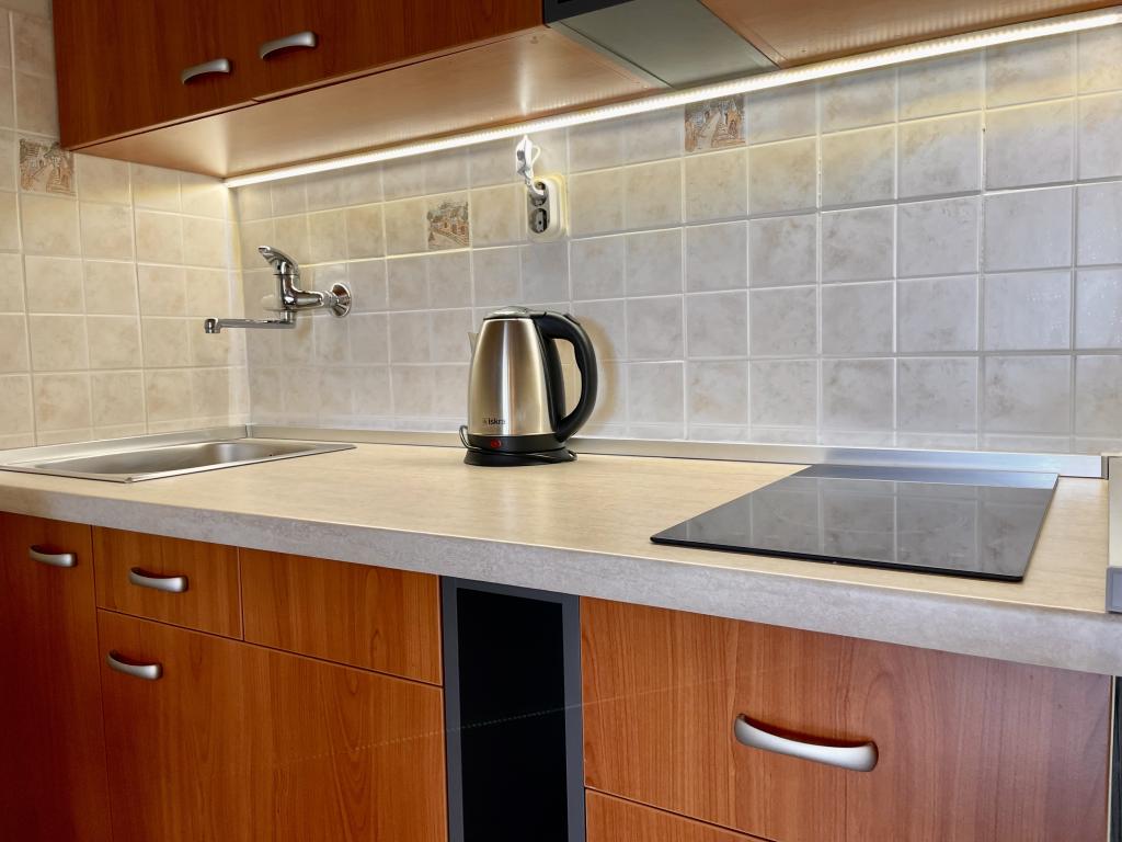 Tento byt můžeme s čistým svědomím doporučit! Velmi čistá, velmi dobře vybavená kuchyň s jídelnou a obývací částí, extra velká ložnice, obrovská koupelna a velká terasa nesplní žádné přání. V kuchyni/obývací části je klimatizace - ale tu opravdu nepotřebujete, protože zadní část bytu je vestavěná do svahu a byt se tolik netopí. Majitelka je velmi přátelská a v případě potřeby je dosažitelná. K dispozici je také přístřešek pro 2 vozidla. V okolí je několik restaurací (2 až 5 minut chůze), kde se můžete velmi dobře najíst a ceny jsou v pořádku. Děkujeme za krásný prázdninový týden! Siegfried