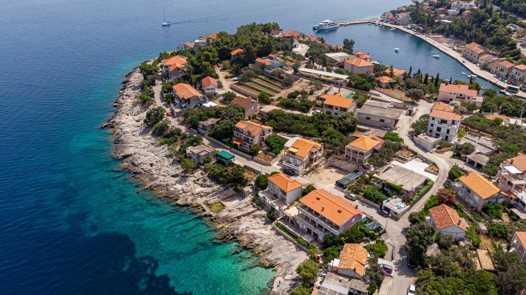 Apartmány Gardenal se nacházejí v zátoce Prigradica, 20 m od moře. Jsou 4 km od Blata, 5 km od Vela Luky a 40 km od města Korčula.