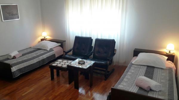 V bytě se dvěma ložnicemi a nachází se v prvním patře domu se zvláštním a samostatným vchodem, na adrese: Primošten, Split 41. Byt se skládá z kuchyně, balkón, ložnice s manželským lůžkem, obývací pokoj se 2 lůžky 1pomoćni, koupelna, WC, předsíň a terasa-balkon. Klimatizované a vybavené příslušným zařízením a jeho inventáře. Dům se nachází v blízkosti centra, nad vozovky silnice s přístupem k bezplatné parkování. Objekt je od centra, veškerá občanská vybavenost a pláž 5-7 minut. A od hlavní pláže a hotelových komplexů 8-10 min. chodit. Dům Byt má velkou zahradu s olivovníky a fíkovníky a rostlin, a je vhodný pro dovolenou, pobyt a děti mohou hrát venku. U domu je parkoviště a gril, který lze používat zdarma. K dispozici je volný vstup do sítě internet a TV. Z terasy-balkon nabízí krásný výhled na město, moře, ostrovy a krajiny.