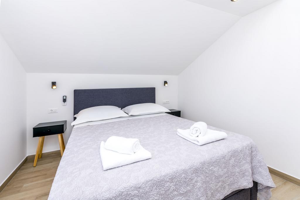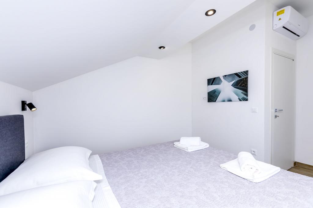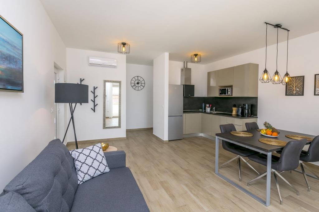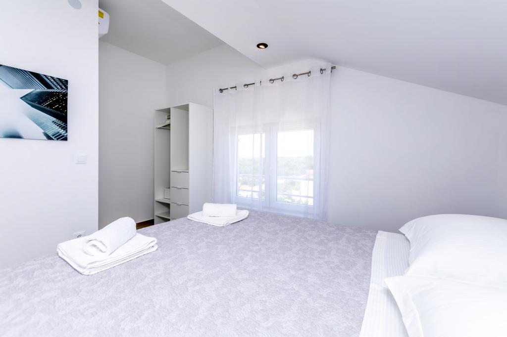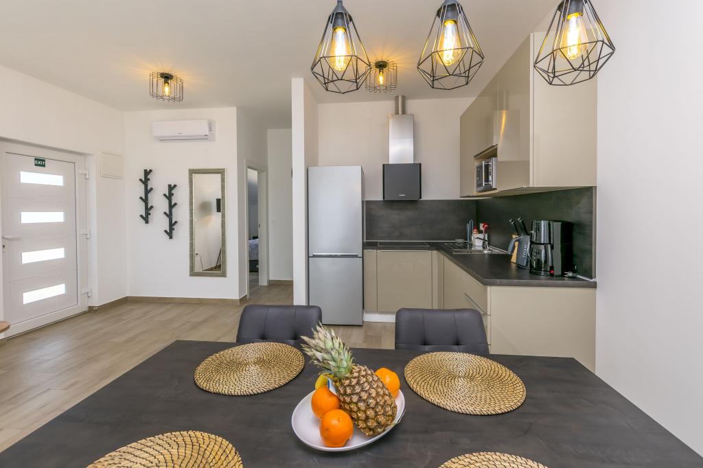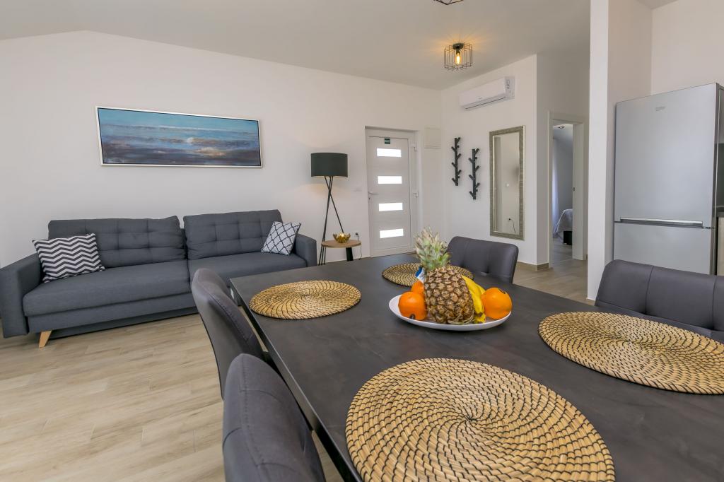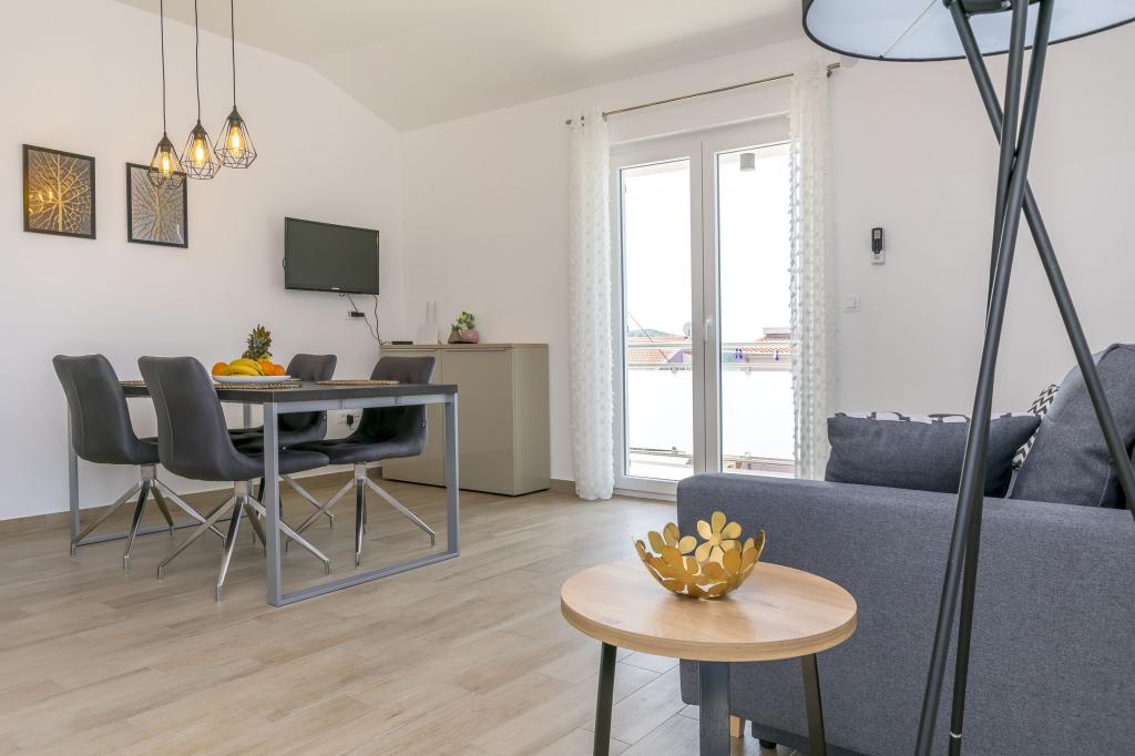 Tento moderní, nově zrekonstruovaný apartmán v blízkosti pláže Velika Raduča nabízí pohodlné ubytování pro 2-4 osoby. Skládá se z ložnice s polní postelí a samostatnou klimatizační jednotkou. Koupelna se sprchou je světlá a útulná. Velká kuchyň, jídelna a obývací pokoj tvoří jeden celek, ve kterém je rozkládací pohovka až pro 2 osoby, klimatizace, TV se spoustou programů v různých jazycích. Balkon nabízí výhled na moře. Bezplatné parkování pro 1 auto je přímo před domem. Byt se nachází 5 minut chůze od centra Primoštenu a jednu minutu od pláže. Kompletně vybavené pro pohodlný pobyt: pračka, žehlící prkno a žehlička, myčka, lednička s mrazákem, mikrovlnná trouba, toustovač, rychlovarná konvice, kávovar, mini trezor. Vítejte!