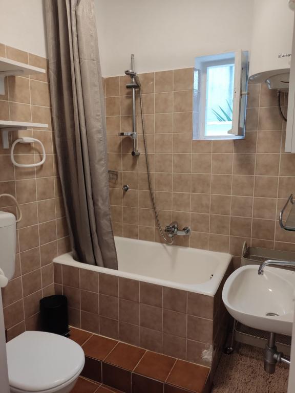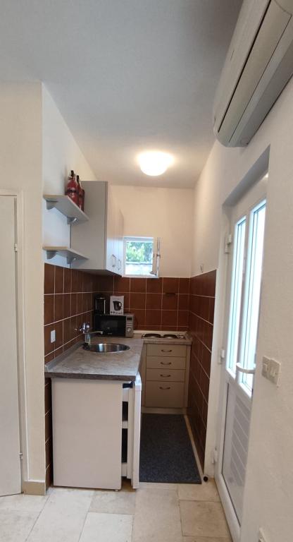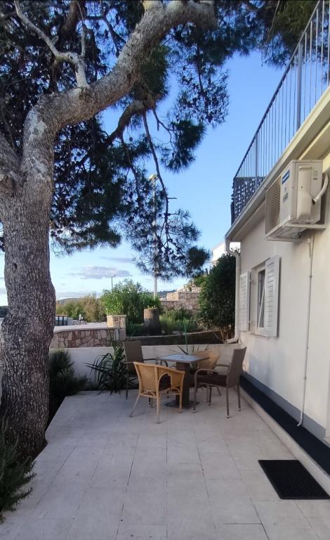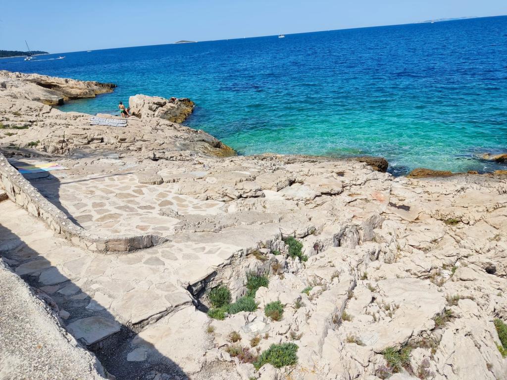 Samostatný byt orientovaný na západ slunce s nerušeným výhledem. Klidná část bez dopravy a větších davů. Čerstvě vyzdobený, je zde první řada k moři, na promenádě kolem ostrova. Pláž je přímo před apartmánem a centrum města, obchody, banky, restaurace a kavárny jsou vzdálené 200 metrů.