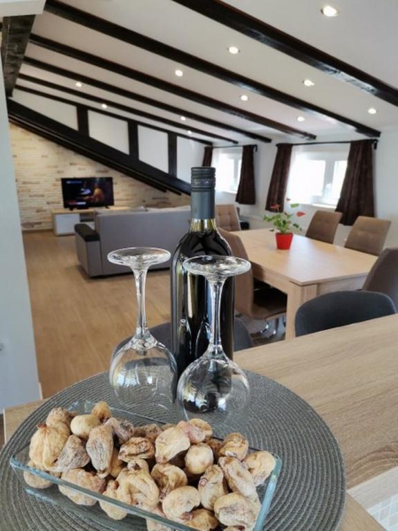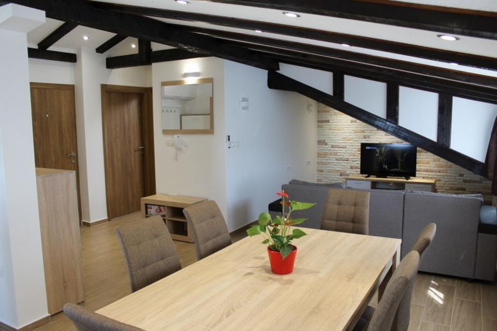 Nový byt se nachází v Bilo, 6 km od centra Primoštenu a 600 m od oblázkové pláže. V bytě je velká krytá terasa s krásným výhledem na moře a západ slunce. Má klimatizaci, SAT / TV na pokoji a v obývacím pokoji, WI-FI, připojení k internetu, pračku, vysoušeč vlasů, myčku, lednici s mrazákem, rychlovarnou konvici, kávovar s filtrem ... Parkování je před domem, u silnice.