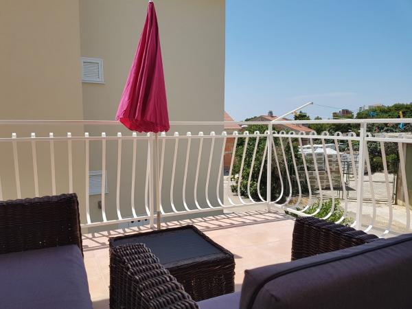 Kompletně a moderně zařízené apartmány v klidné části Primoštenu se stávajícím parkovištěm a velkými terasami s výhledem na moře. Vzdálenost 400 m od moře, 200 m od pošty, banky, rybářského trhu a koláče.
