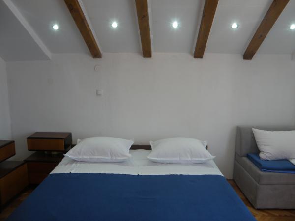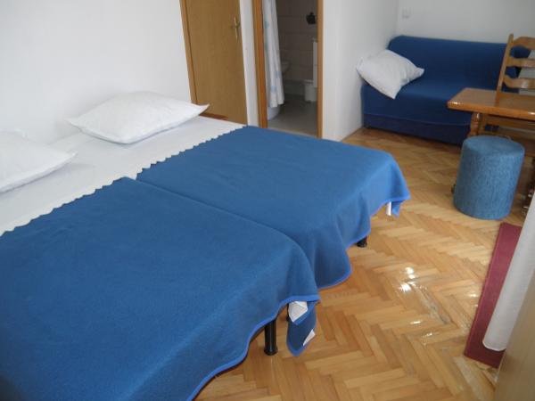 Krásný a moderní apartmán pro čtyři nebo pět v centru Primoštenu s možností parkování pro jedno auto, jen pár minut od pláže, jen pár minut na hlavní náměstí, trhy, obchody. Komfortní klimatizované, můžete využít bezplatné Wi-Fi. Skládá se ze dvou pater. V horní části jsou dvě ložnice a malá koupelna. V jedné místnosti je manželská postel a jeden dvoulůžkový, obě ložnice vedou na malý balkon. V dolní části kuchyně, jídelna, pohovkou a verandou. Nachází se v klidné části města, a vše je na dosah ruky - ideální pro ideální dovolenou. Studio Thomas v Put moruše 19, v klidné staré části města. Dvoulůžkový pokoj s přistýlkou je obohacen s kuchyňským koutem a koupelnou. Je vybaven televizí a klimatizací a je v hale a jeho vynikající izolační ochlazuje místnost ve velmi krátkém čase. Parkování je v zadních uličkách Řehoře z Ninu, vedle parku.