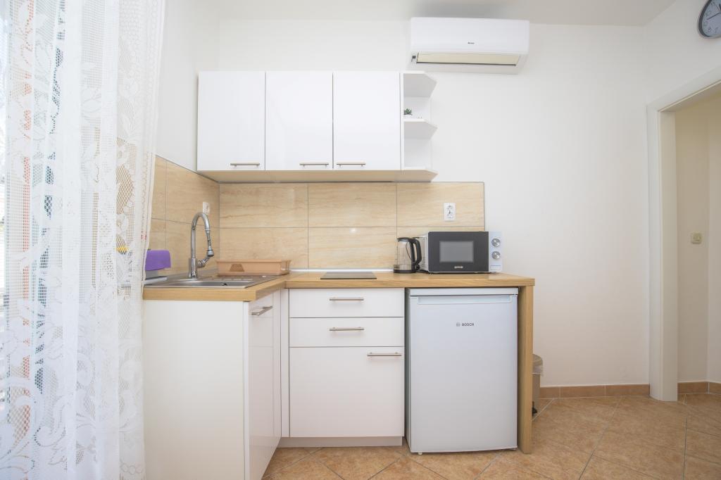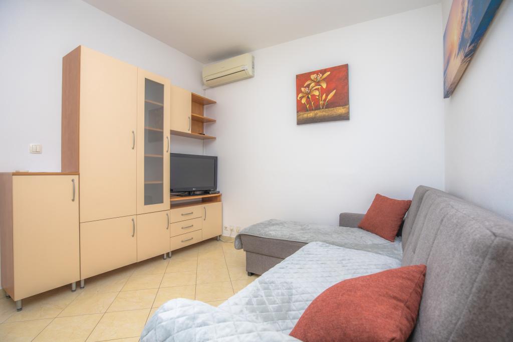 Byt se nachází jen 2 minuty od moře s oblázkovou pláží a kavárnou, promenádou do centra u moře. Nacházíme se v klidném prostředí. K domu náleží garáž a dvůr s parkováním.