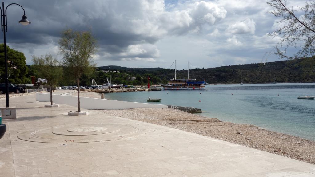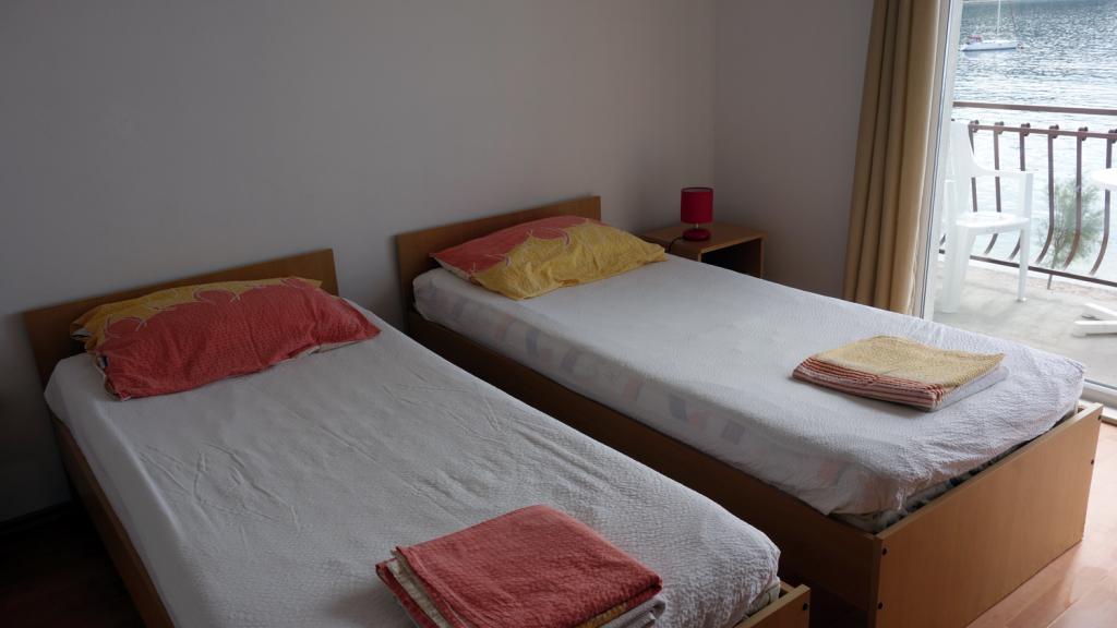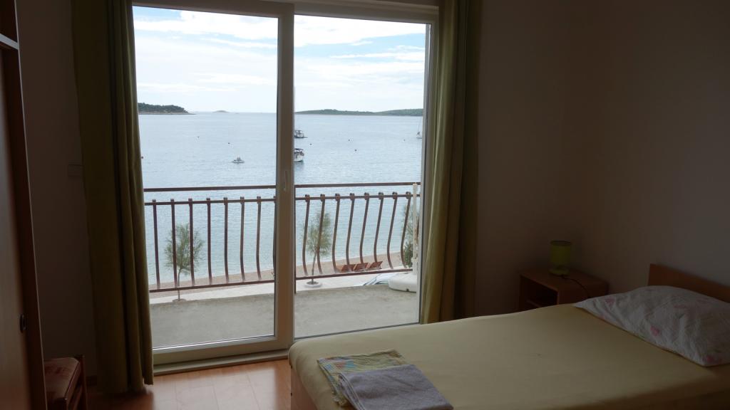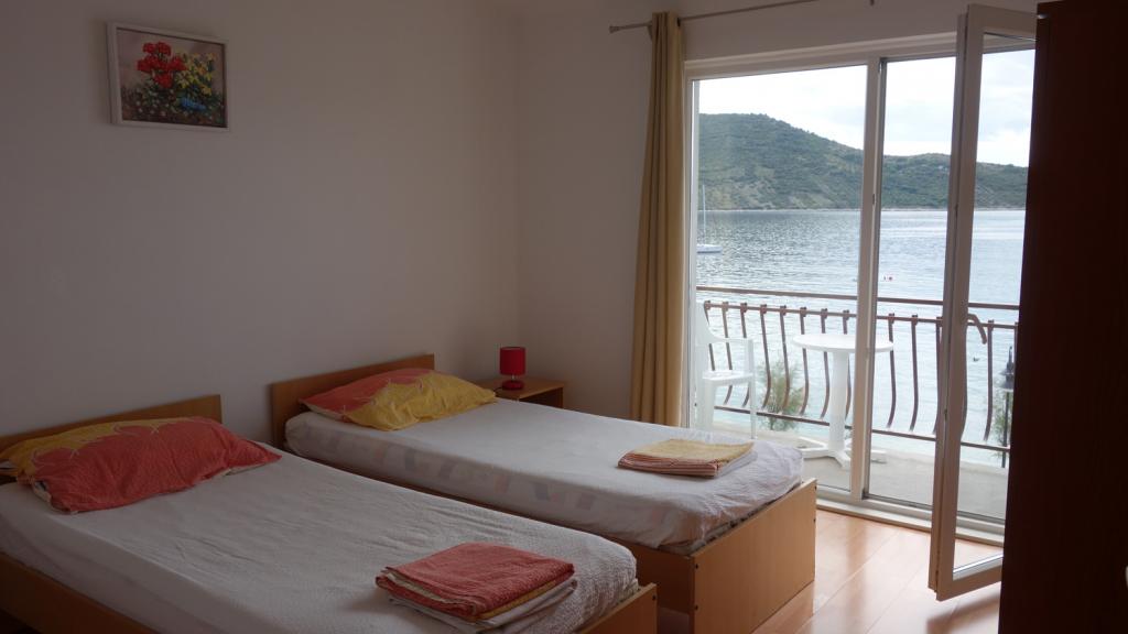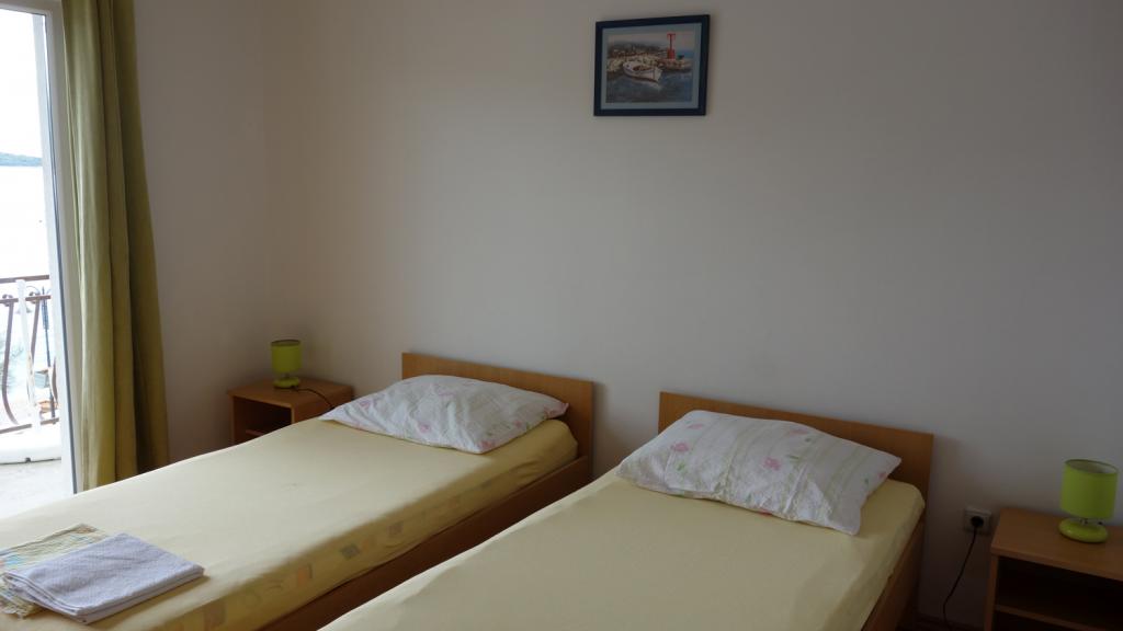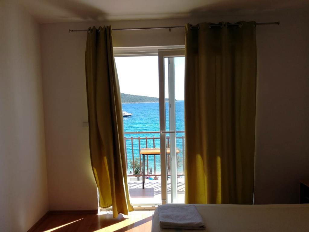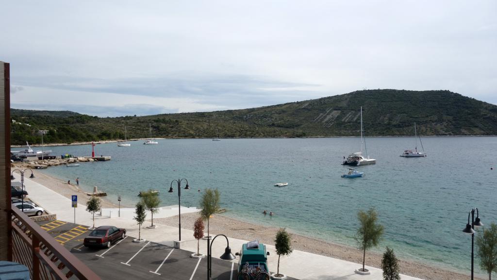 Apartmány se nacházejí v rodinném domě v Primoštenu, v první řadě u moře. Oblázková pláž je v přední části domu a bezplatné parkování se nachází ve dvou lokalitách - jedna je před domem a druhá je 5 minut chůze od hotelu. Dva 4 1 apartmány jsou ve druhém patře. Jeden apartmán má tři terasy a další dvě. Oba apartmány mají výhled na moře. Studio A2 (pokoj s koupelnou a kuchyňským koutem) se nachází ve zvýšeném přízemí. Tento apartmán má terasu a výhled do zahrady.