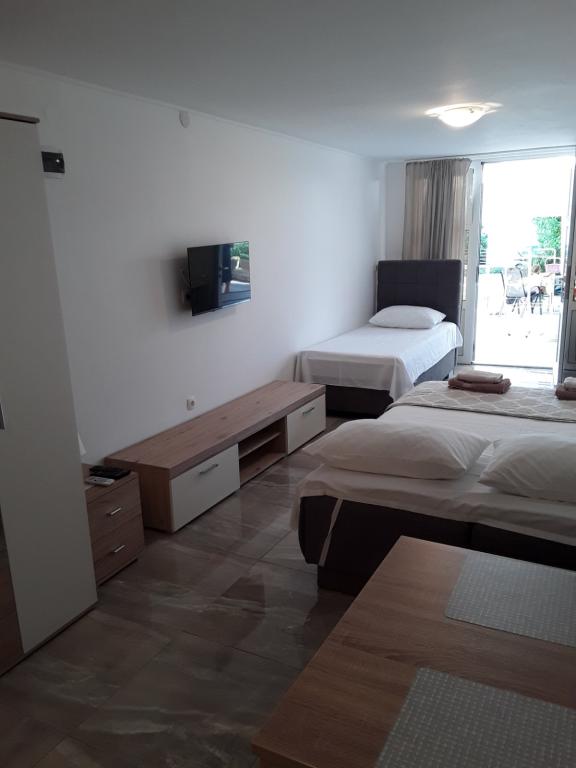 Plně vybavené apartmány v klidné oblasti druhé řady u moře, pouhých 100 metrů od pláže. Apartmány mají vše, abyste si užili dovolenou a cítili se jako doma, parkoviště se nachází před domem. Apartmány jsou 28 km od Šibeniku a 35 km od národního parku a 30 km od letiště Split (Resnik).