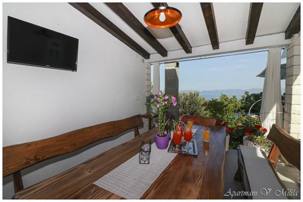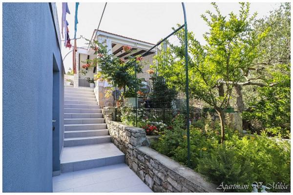 Vítejte v apartmánech Miliša-Vesna! Užijte si klid a krásu našeho krásného Primoštenu! Apartmány Miliša se nacházejí v klidné části Primoštenu. 100 metrů od oblázkové a skalnaté pláže a 600 metrů od centra, kam se dostanete pěšky za 8 minut. Naše apartmány mohou ubytovat od 2 do 16 osob. Každý apartmán je vybaven satelitní TV, klimatizací a wifi. Každý apartmán má parkování ve dvoře. Na zahradě s velkou společnou terasou můžete grilovat. Apartmány Miliša vám poskytují krásný výhled z každé terasy našeho bytu a dávají vám možnost užít si západ slunce v Primoštenu, což je nejkrásnější a nejromantičtější západ slunce.