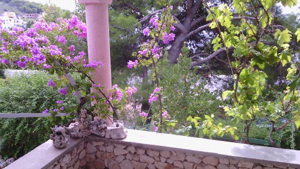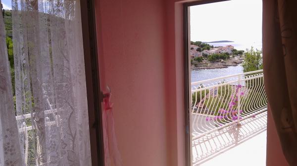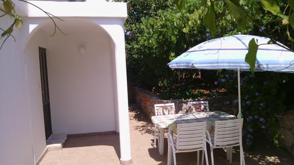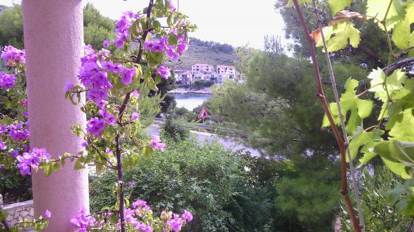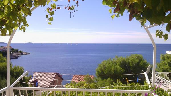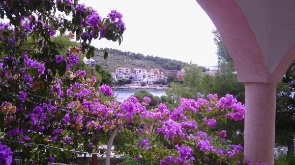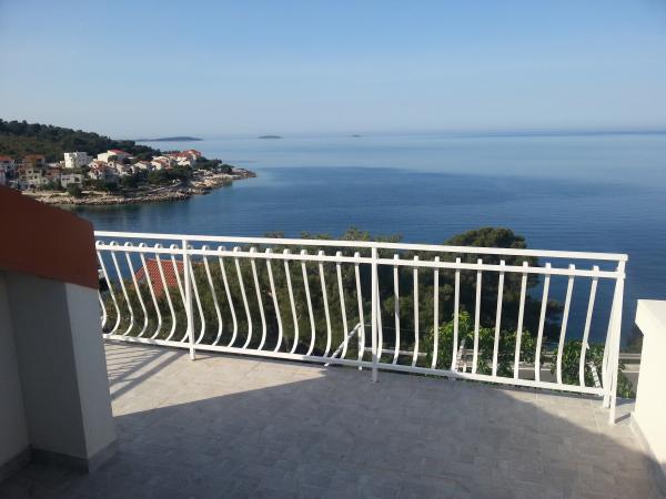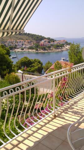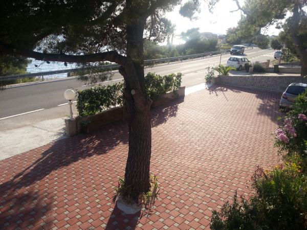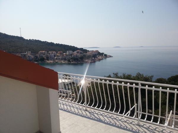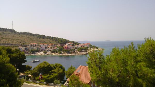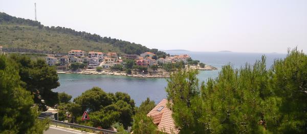 Klimatizované apartmány s výhledem na moře, umístěné ve druhé řadě k moři. Vzdálenost od pláže je 30 metrů. Pláže jsou oblázkové a křišťálově čisté. Wi - Fi - využívání internetu zdarma. Nemovitost má několik teras ve stínu s posezením vedle penzionu a venkovní gril k použití. Přístup k autu a bezplatné parkování ve stínu borovic ve dvoře domu. Každý apartmán má kuchyň s lednicí s mrazničkou, elektrickým sporákem, varnou konvicí a nádobí z nerezové oceli. Ventilátory, žehlička a žehlicí prkno a vysoušeč vlasů. Vzdálenost do Splitu je 55 km, NP Krka 30 km, Trogir 30 km a Šibenik 20 km. Každý apartmán má klimatizaci.