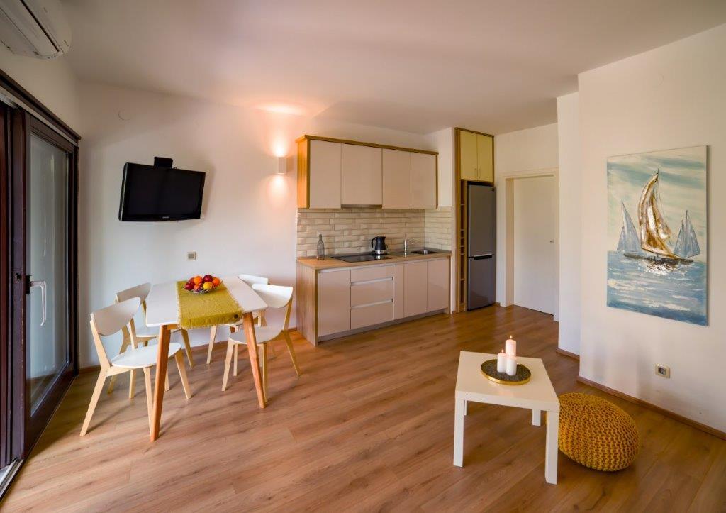 Kompletně zařízené, zařízené a vybavené apartmány umístěné u moře a pláže s lehátky. Apartmány se nacházejí v zátoce Tepli Bok jen 800m od centra krásného Primoštenu. Do centra se dostanete po promenádě u moře za pouhých 15 minut chůze. Máme 10 ubytovacích jednotek různých velikostí od apartmánů pro 2 osoby až po apartmány pro 8 osob. Naše oáza vám dává příležitost pro skutečnou a příjemnou dovolenou, užívat si slunce a čistého moře. Se vším svým komfortem nabízí krásný výhled z každé terasy apartmánu a dává vám možnost vychutnat si západ slunce v Primoštenu, který je známý jako nejkrásnější a nejromantičtější západ slunce.