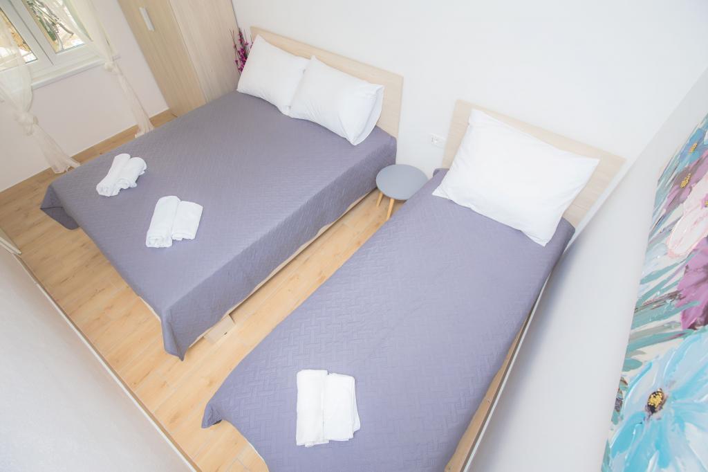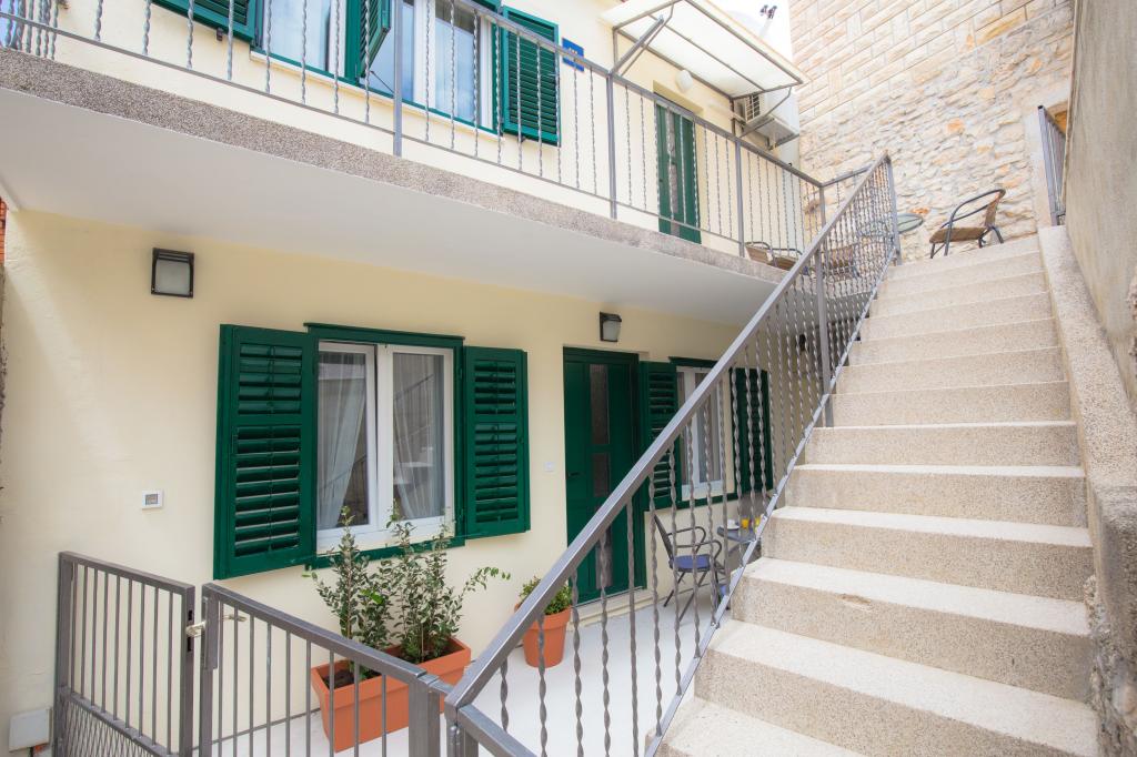 Nově zrekonstruované apartmány ve staré části Primoštenu, v přísném centru, obklopené restauracemi, obchody se suvenýry a obchody. Apartmány (cca 55m2) mají 2 ložnice, kuchyň, koupelnu se sprchou a balkon. Má klimatizaci, SAT TV, pračku. Parkování je zajištěno mimo starou část, asi 300 metrů od apartmánu.