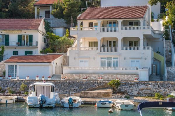 Exkluzivní vila Emma, nový kamenný dům, přímo u moře. Nachází se v Primošten, v klidné zátoce Porat. Jen pár minut chůze vede k oblázkovým plážím a do centra. Všechny luxusní apartmány mají velkou krytou terasu s krásným výhledem na moře. V domě je 5 apartmánů: Apartmány číslo 1, 2, 3 mají 2 ložnice, obývací pokoj s patrem, 1 koupelnu. Apartmány číslo 4 mají 1 pokoj, obývací pokoj s patrem, 1 koupelnu. Apartmány číslo 5 mají 3 pokoje, obývací pokoj s lůžkem, 2 koupelny. Každý apartmán má vlastní vchod a parkoviště. Klimatizace v každém pokoji a obývacím pokoji. Moderní vybavení, plně vybavená kuchyň, koupelna, satelitní / TV. Ideální čas příjezdu 14:00 a odjezd 10:00.