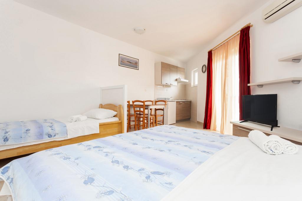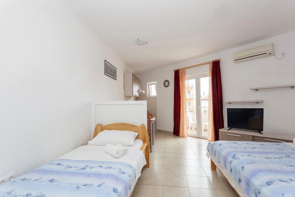 Užili jsme si pobyt a byt. Byt - to vše ve velmi dobrém stavu, čistý, staral se o, čerstvý, pohodlné postele, klimatizace. Výhodná poloha - velmi blízko pláže a ne v davu však válcovací turisté. Půvabné městečko, ideálním místem i do dalších oblastí jako Schibenik nebo Trogiru. Majitel pozorný, pomáhá neorientované. Doporučuji.