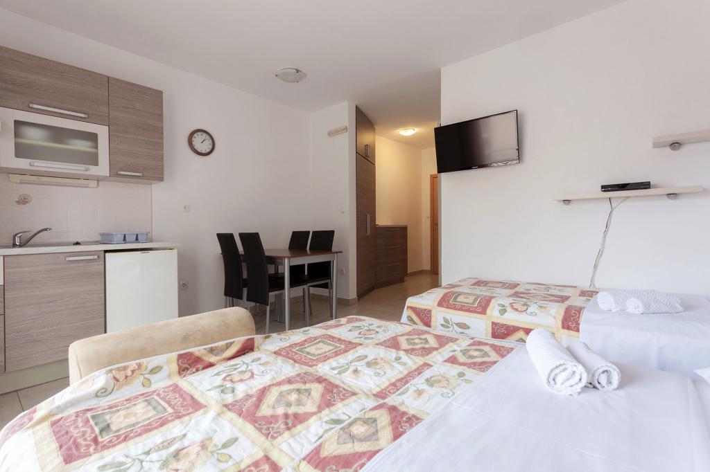 Byt je velmi dobře vybavené, prostorné, čisté a uklizené. Každý apartmán má pračku. Majitel je velmi přátelský a ochotný. Na místě je výborná. V blízkosti (max 10 min chůze) má několik pláží, restaurací, obchodů. Parkování před apartmá, bezpečné a vždy zaručena. Náš jediný problém byl Škrábání postel.