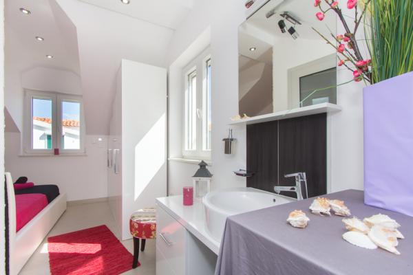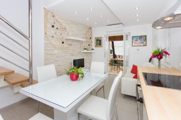 Primabella dům se nachází v centru starého historického města Primošten. Leží ve vzdálenosti 30m od moře na úpatí zvonice sv George. Sloučenina je tradiční a moderní architektura. Byla postavena z přírodních materiálů (kámen, dřevo, kované železo), což mu dává vzhled autentického dalmatského domu. To má tři podlaží. V přízemí je dvůr s verandou, grilem a trávník s okrasných rostlin, stejně jako kuchyně, jídelna a obývací pokoj. V prvním patře je koupelna a pokoj se dvěma patrovými postelemi. V nejvyšším patře je pokoj s manželskou postelí, WC a umyvadlem. Z horního patra nabízí úchvatný výhled na moře a Primoštenske promenády. Luxusní interiér zahrnuje prvky z přírodního kamene na stěnách, vnitřní dřevěné měřítko s plotem vyrobeny z nerezové oceli a vysoce lesklé bílé zboží nejlepších výrobců. V přízemí a dvě horní patra jsou klimatizované samostatně. Bezplatné parkování je zajištěno v blízkosti objektu. Primabella-, aby vaše dovolená nezapomenutelné potěšení !!