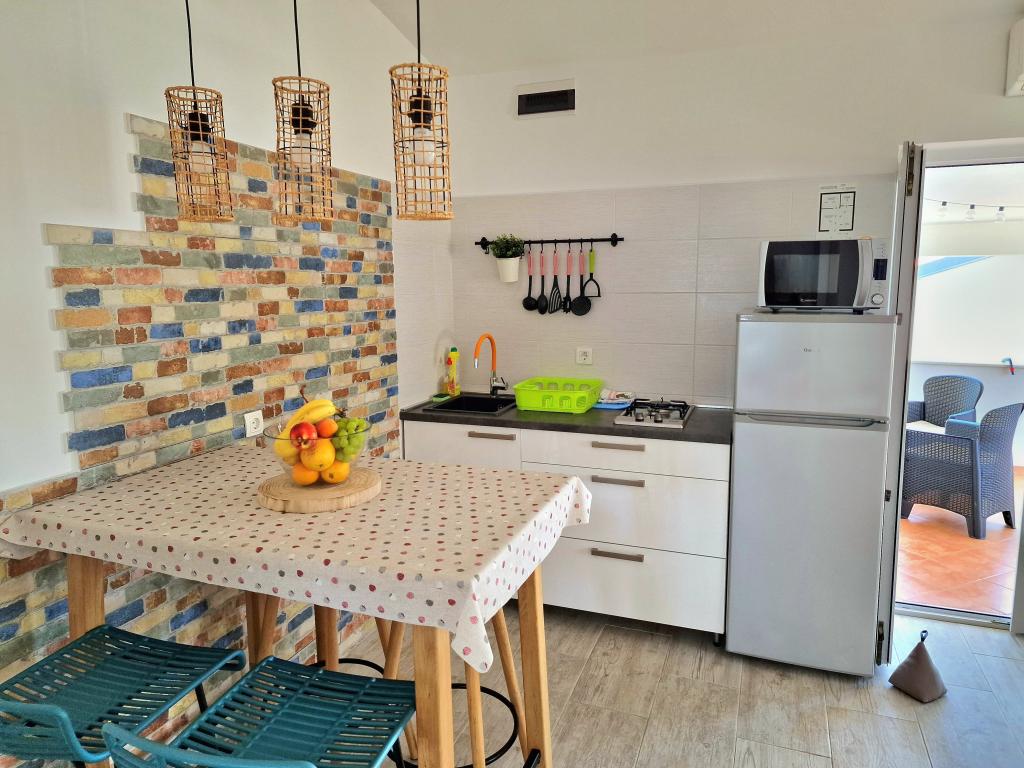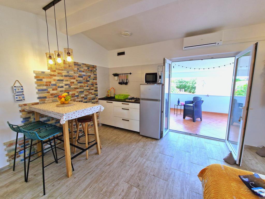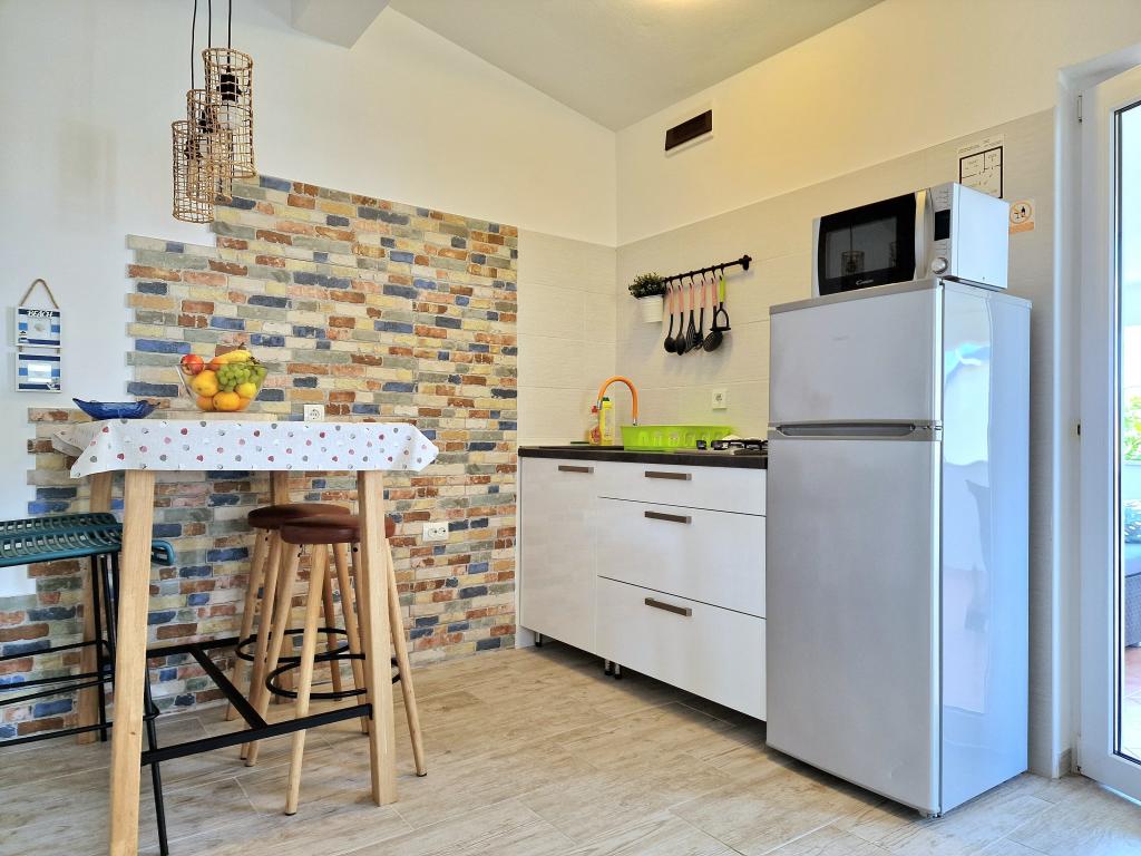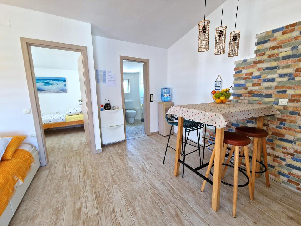 Byt se nachází na adrese Bilotinjaka II, číslo domu 18, v Privlaka (Škrapavac). Nachází se v blízkosti města Zadar, které je vzdálené 15 km a turistického střediska Zaton, které je vzdálené 1 km. Vzdálenost od pláže je asi 200 metrů a pláž je vhodná pro malé děti a neplavce, protože moře je mělké a písčité. Ubytovací kapacita je poskytována pro 4 osoby, ideální pro rodiče a dvě děti. Byt je v rodinném domě v prvním patře. Plocha bytu je 36 m2 + 15 m2 zastřešená terasa a skládá se z: - ložnice - obývacího pokoje - s manželskou postelí - kuchyně - koupelny - klimatizace - grilu (ve dvoře) - solární sprchy (ve dvoře) - parkovacího místa