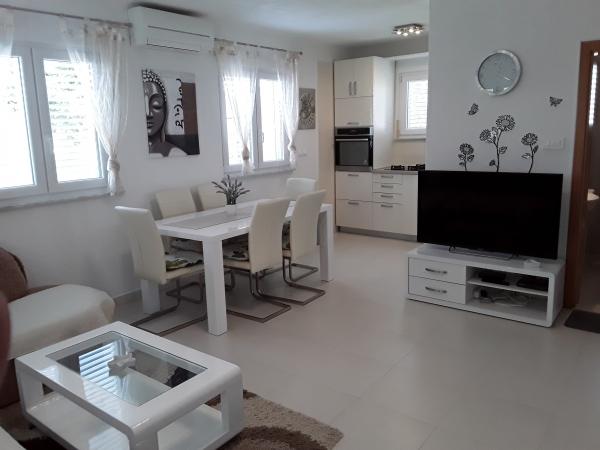 Byt Nina má jeden apartmán pro 4 osoby, 1 a se nachází v přízemí rodinného domu se nachází v klidné zátoce mezi Škrapavac Privlaka a Zaton (1 km), na pouhých 100 m od pláže. Apartmány se skládají ze dvou ložnic, kuchyně, jídelna, obývací pokoj, koupelna a terasa. Byt je plně vybaven, má vlastní terasu, parkovací stání (1 parkoviště), na dvoře je gril a venkovní sprcha. Byt je vybaven klimatizací, SmartTV TV, satelitní TV, lednička s mrazákem, mikrovlnná trouba, internet. V ceně je zahrnuto kompletní prádlo a místních poplatků.