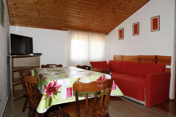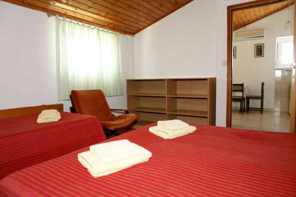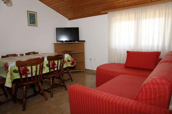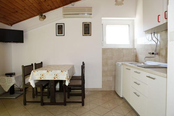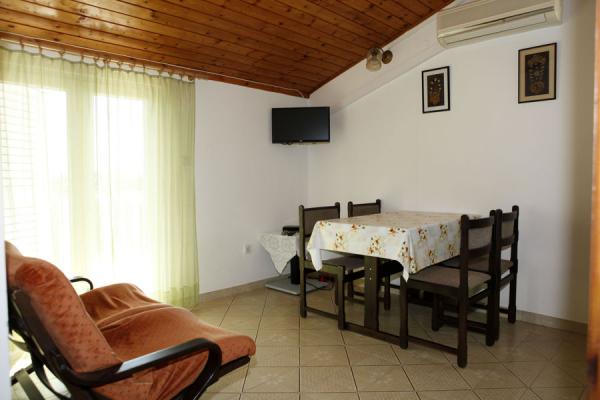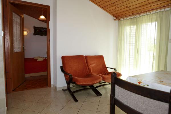 Apartmány Soline se nachází v rybářské vesnici Zadar, 25 km severozápadně od Zadaru. Dům se nachází v klidné části Zadaru a je obklopen přírodou, s výhledem na moře na jihu a východě, a moře a hory Velebit ze severní strany. Tato oblast je známá pro své písečné pláže a čisté mělkých vodách, ideální pro malé děti. Dům se nachází 5 minut chůze od písečné pláže, 10 minut do menších obchodů a půl hodiny chůze od centra. V zahradě je úhledně upravené nádvoří s množstvím květin, trávníku a zahradních hostitelů. Ve dvoře gril domu, a kryté parkoviště, které jsou k dispozici pro hosty. Apartmány jsou určeny pro pobyty 3-5 osob (40 m2 a 60 m2). Apartmán 2 1 Popis: 40 m², první patro pokoj s gaučem pro 2 osoby další lůžko pro 1 osobu kuchyň, jídelna vana / WC Satelitní TV, klimatizace balkón, nábytek, slunečník lůžkoviny, ručníky, příbory a vaření, fén