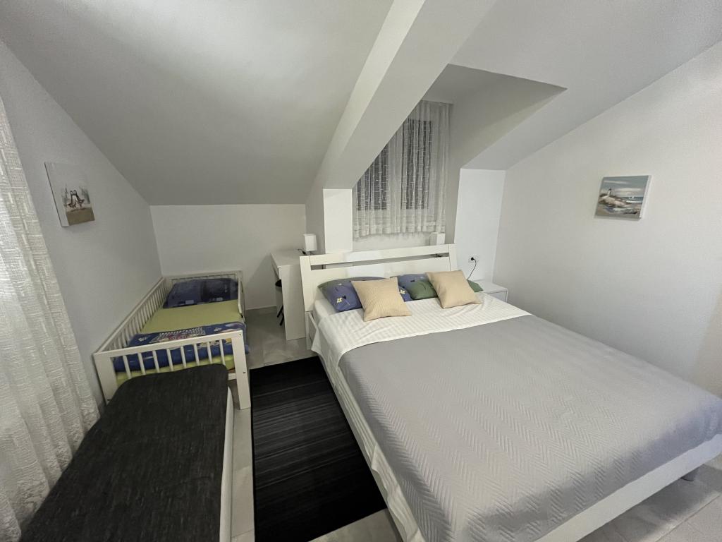Apartmány Abela, nové apartmány v rodinném domě se samostatným vchodem, plně zařízené pro příjemnou dovolenou. Skládají se z kuchyně s obývacím pokojem, jedné ložnice, koupelny, velké terasy s otevřeným výhledem na moře. Menší apartmán má výhled na moře, ale nemá terasu. Toto je ubytování pro vás, pokud potřebujete klidnou dovolenou u písečných pláží s teplým mořem.