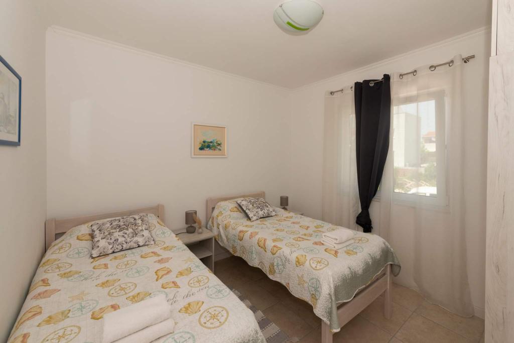 Plně vybavené apartmány. Ubytovací kapacita: dvoupokojový apartmán (pro 6 osob) apartmán s jednou ložnicí (pro 4 osoby) Nachází se na pláži (1min chůze) v klidné obci Privlaka. Ideální pro rodiny s dětmi. Na pláži je zázemí pro děti, hřiště, šlapadla, kavárna, restaurace, obchod, rychlé občerstvení... 20 min autem z centra města 30 min autem z letiště