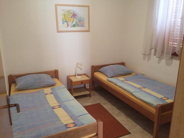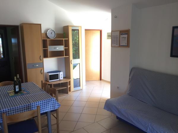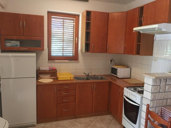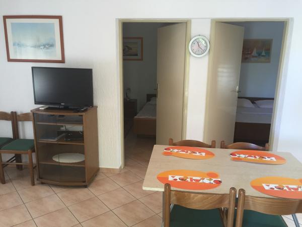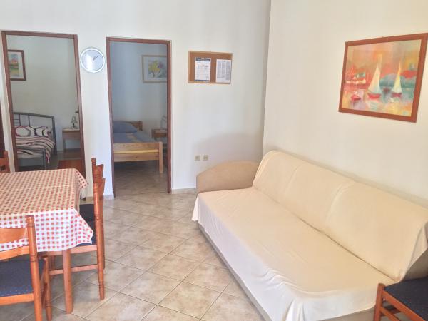 Příjemné prostředí, dobrý přístup k moři, výhodou je parkoviště pro auta v areálu. V blízkém okolí se nachází obchod a prodejna pečiva. Možnost využívat venkovní gril je super. Domácí majitelé jsou milí, příjemní a velmi ochotní. Pláž je písčitá a vhodná i pro malé děti. V bytě je vynikající.